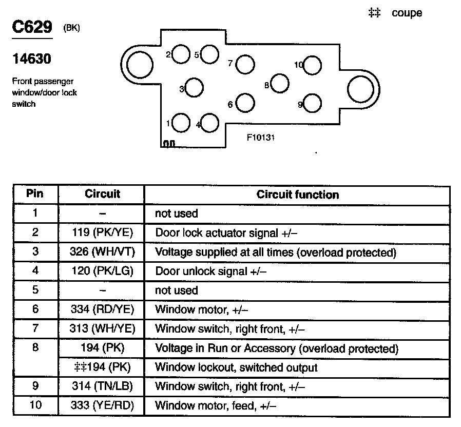 Front Passenger Window/Door Lock Switch