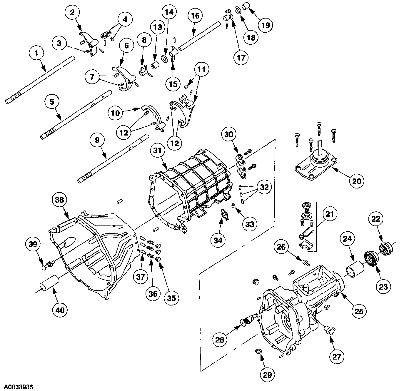 Transmission Case and Shift Components - Disassembled View