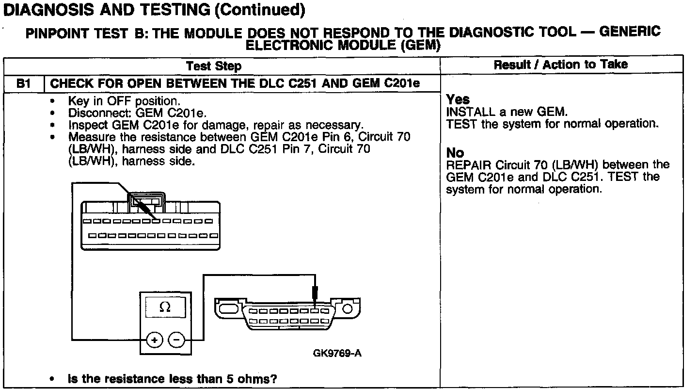 PINPOINT TEST B: THE MODULE DOES NOT RESPOND TO THE DIAGNOSTIC TOOL - GENERIC ELECTRONIC MODULE (GEM)