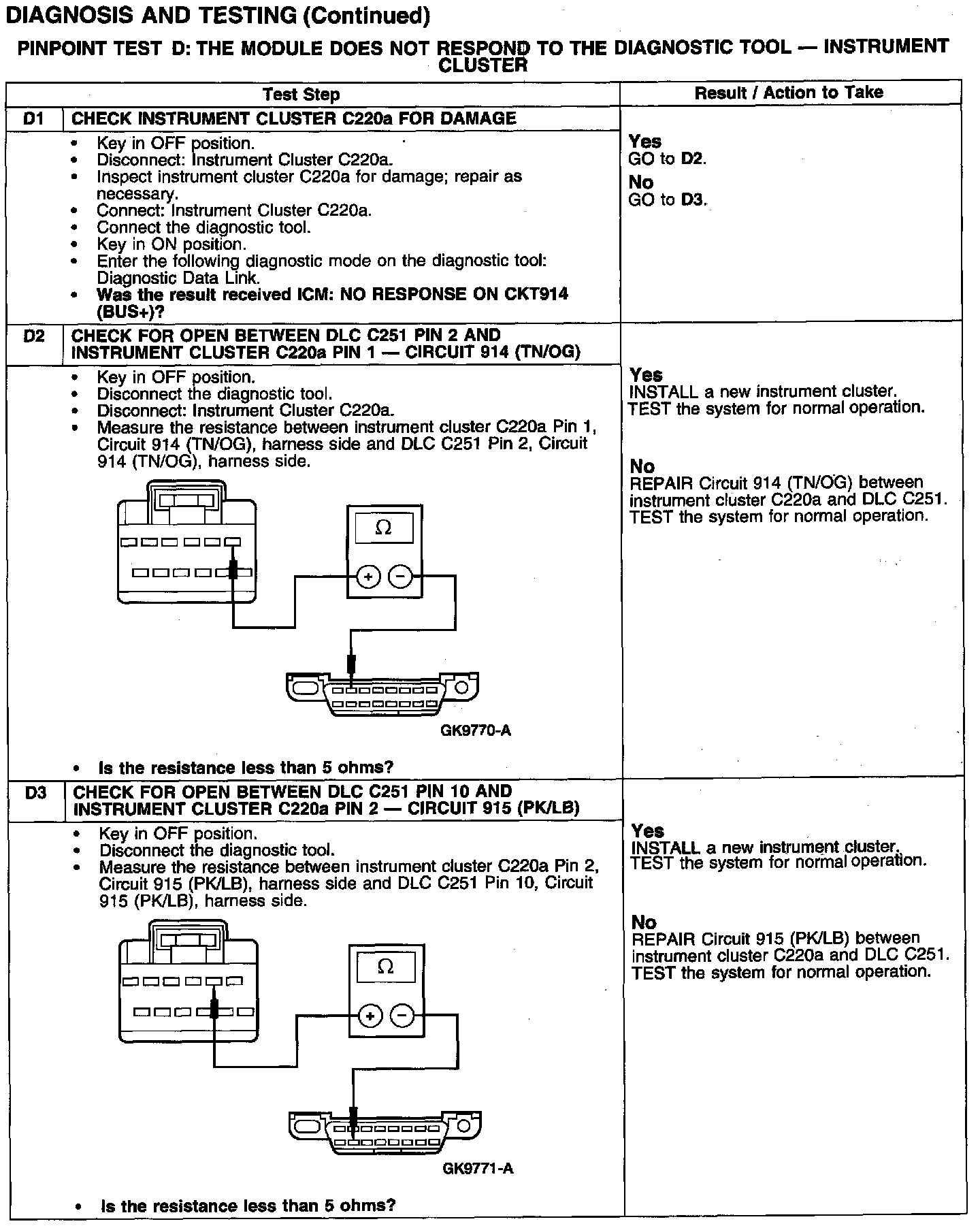 PINPOINT TEST D: THE MODULE DOES NOT RESPOND TO THE DIAGNOSTIC TOOL - INSTRUMENT CLUSTER