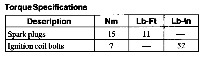 Torque Specifications:
