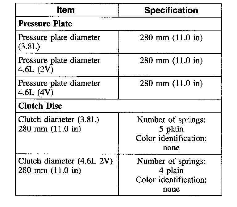 Clutch General Specifications