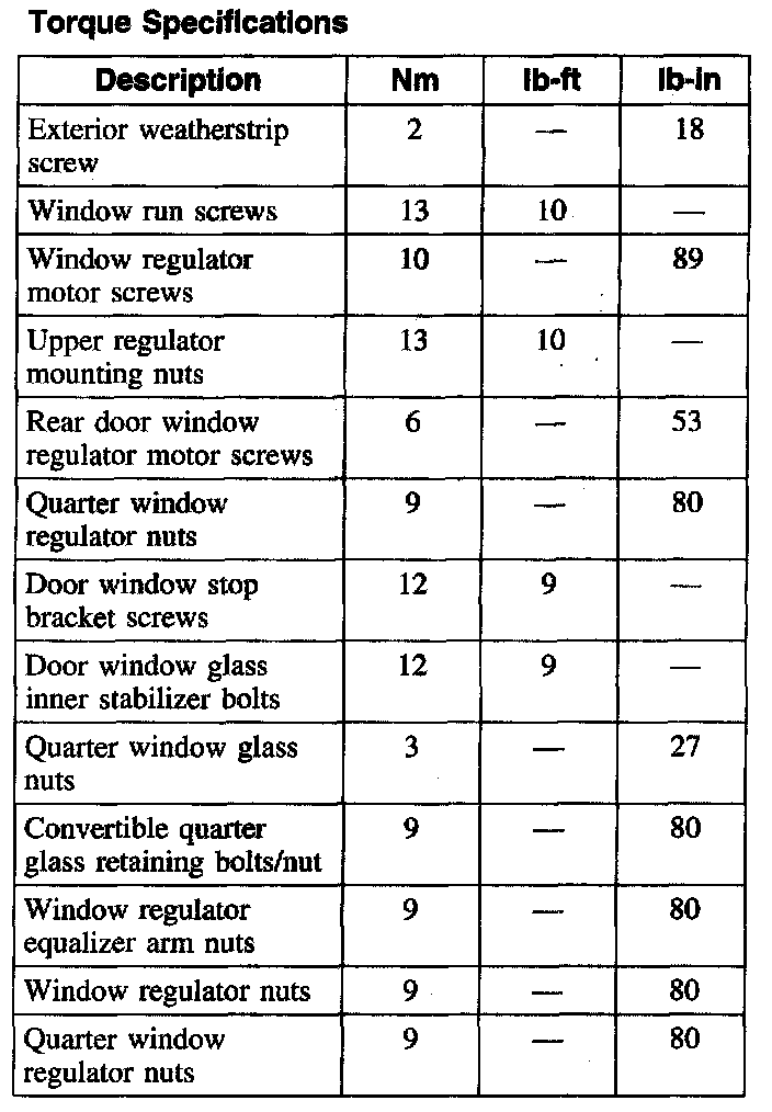 Torque Specifications: