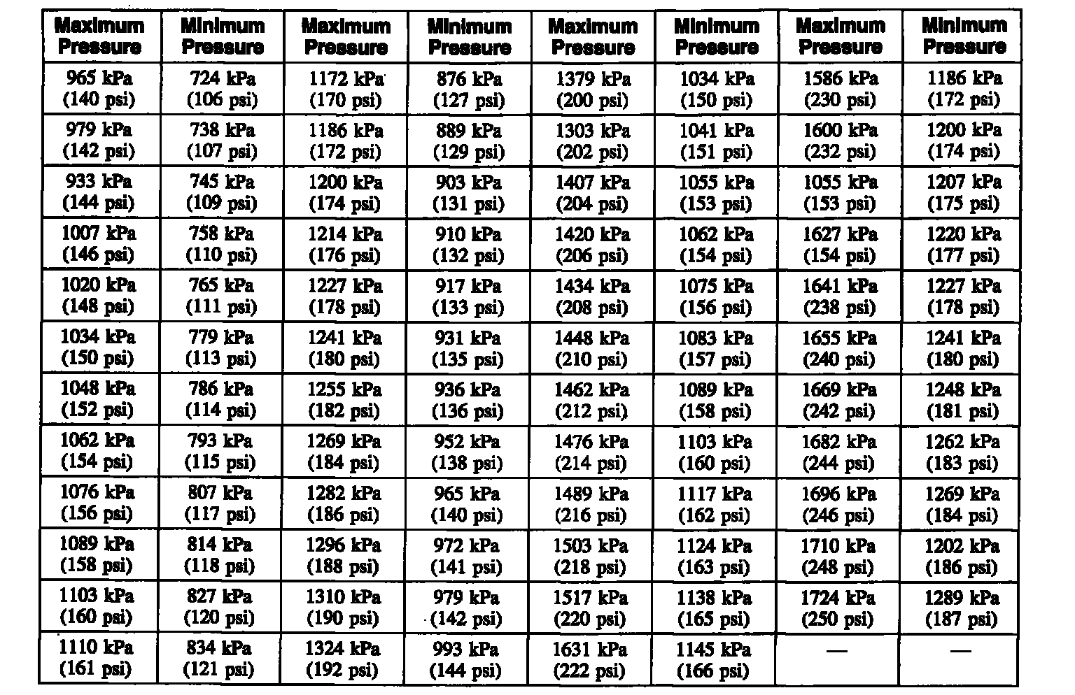 Compression Pressure Limit Chart
