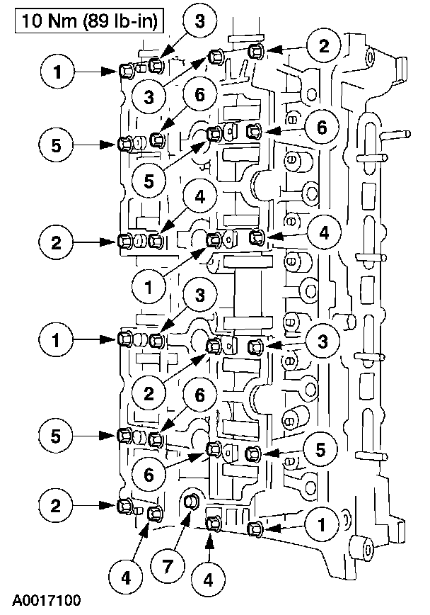 Camshaft cap cluster to cylinder head 10 Nm (89 inch lbs.)