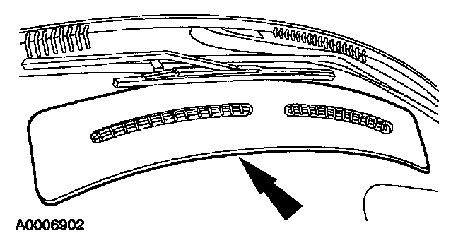 NOTE: Lift upwards on the rear edge of the defroster grille then slide rearward to remove.