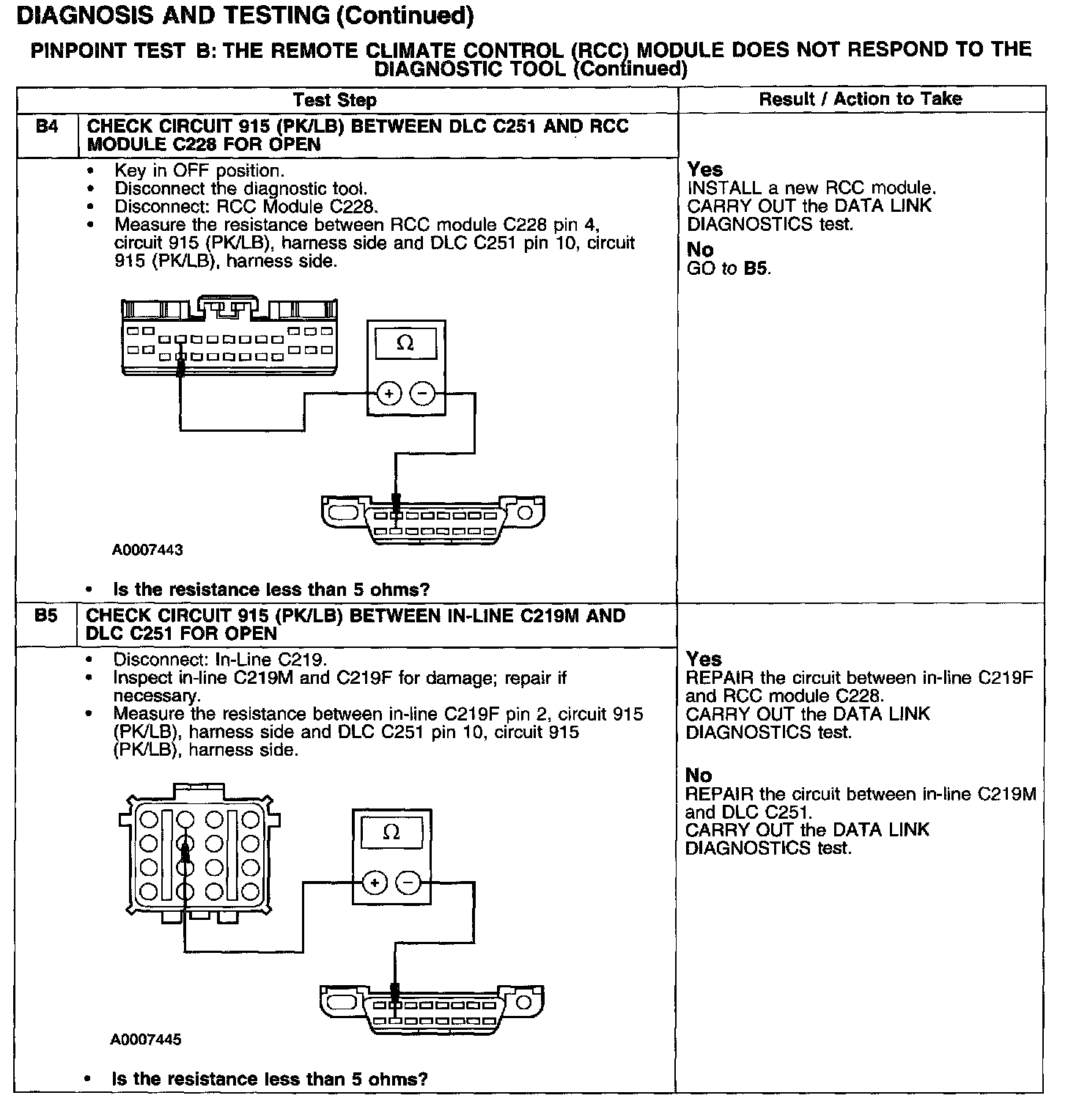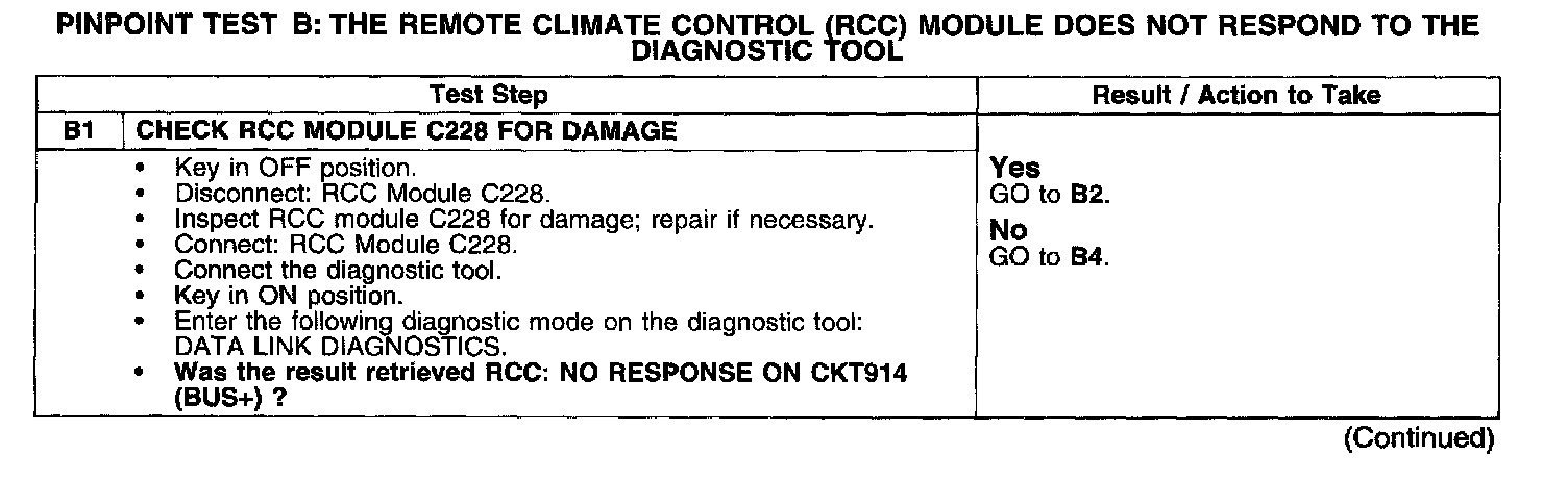 PINPOINT TEST B: THE REMOTE CLIMATE CONTROL (RCC) MODULE DOES NOT RESPOND TO THE DIAGNOSTIC TOOL