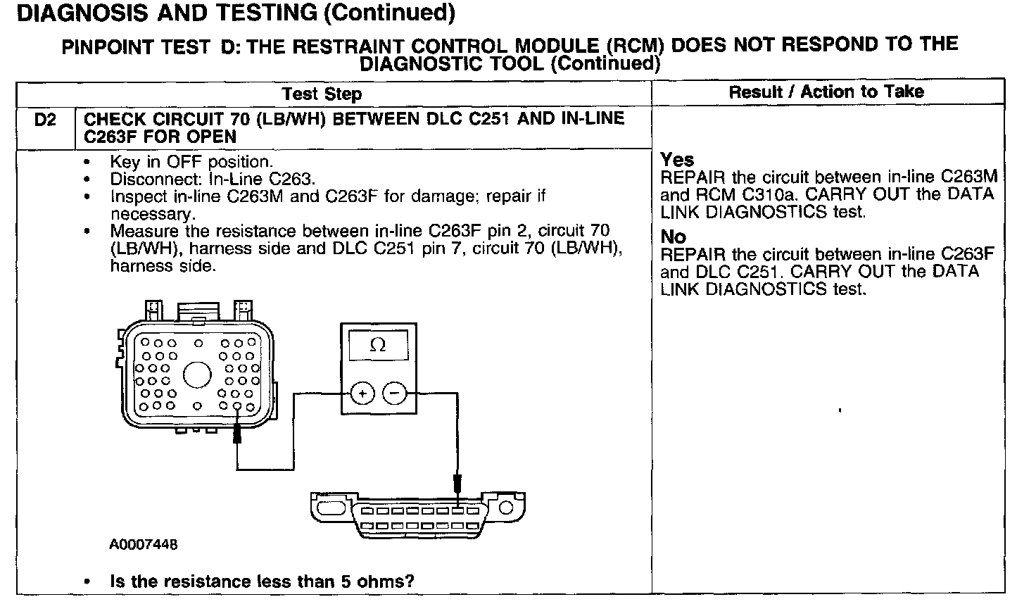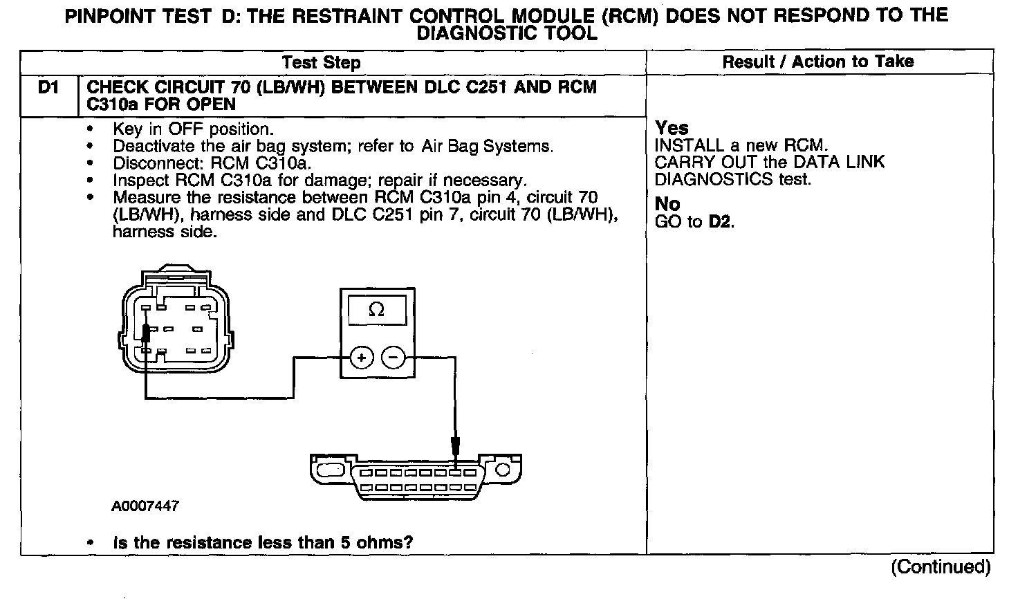 PINPOINT TEST D: THE RESTRAINT CONTROL MODULE (RCM) DOES NOT RESPOND TO THE DIAGNOSTIC TOOL