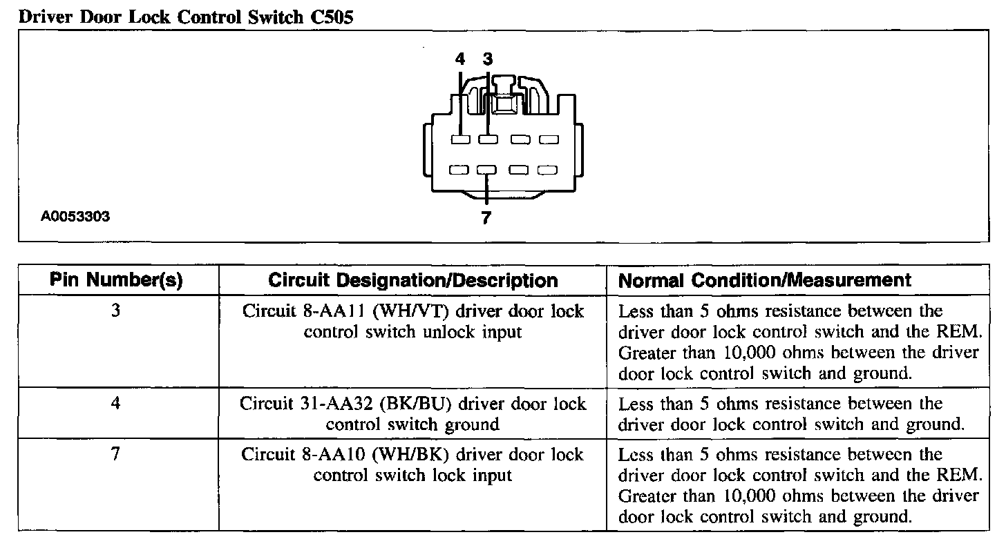 Driver Door Lock Control Switch C505: