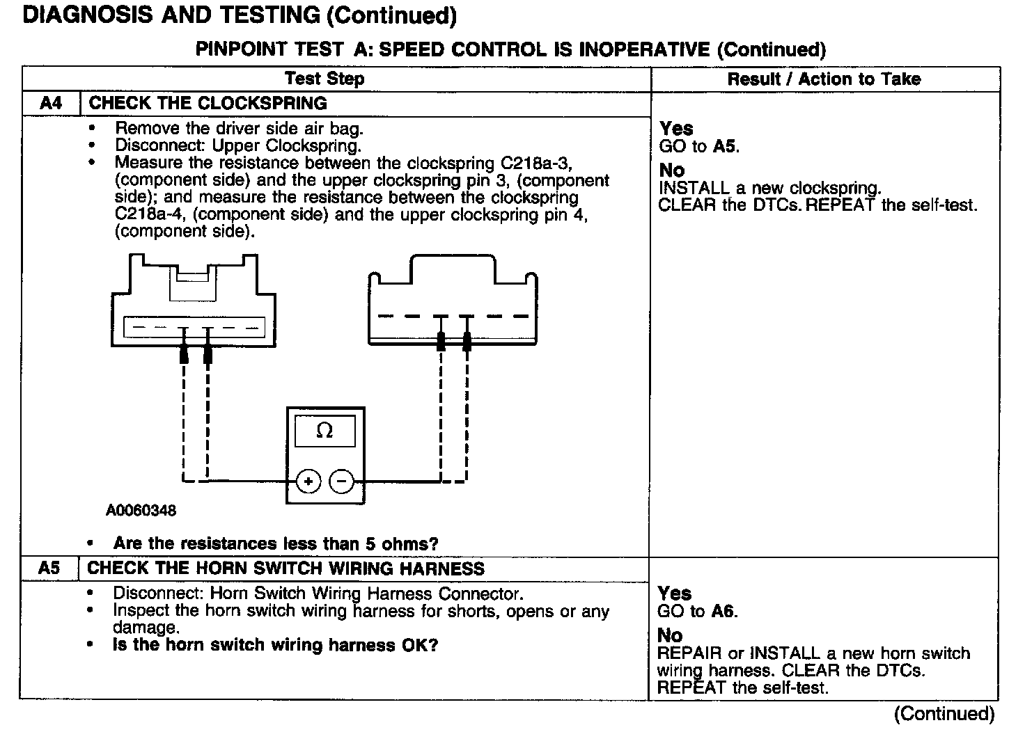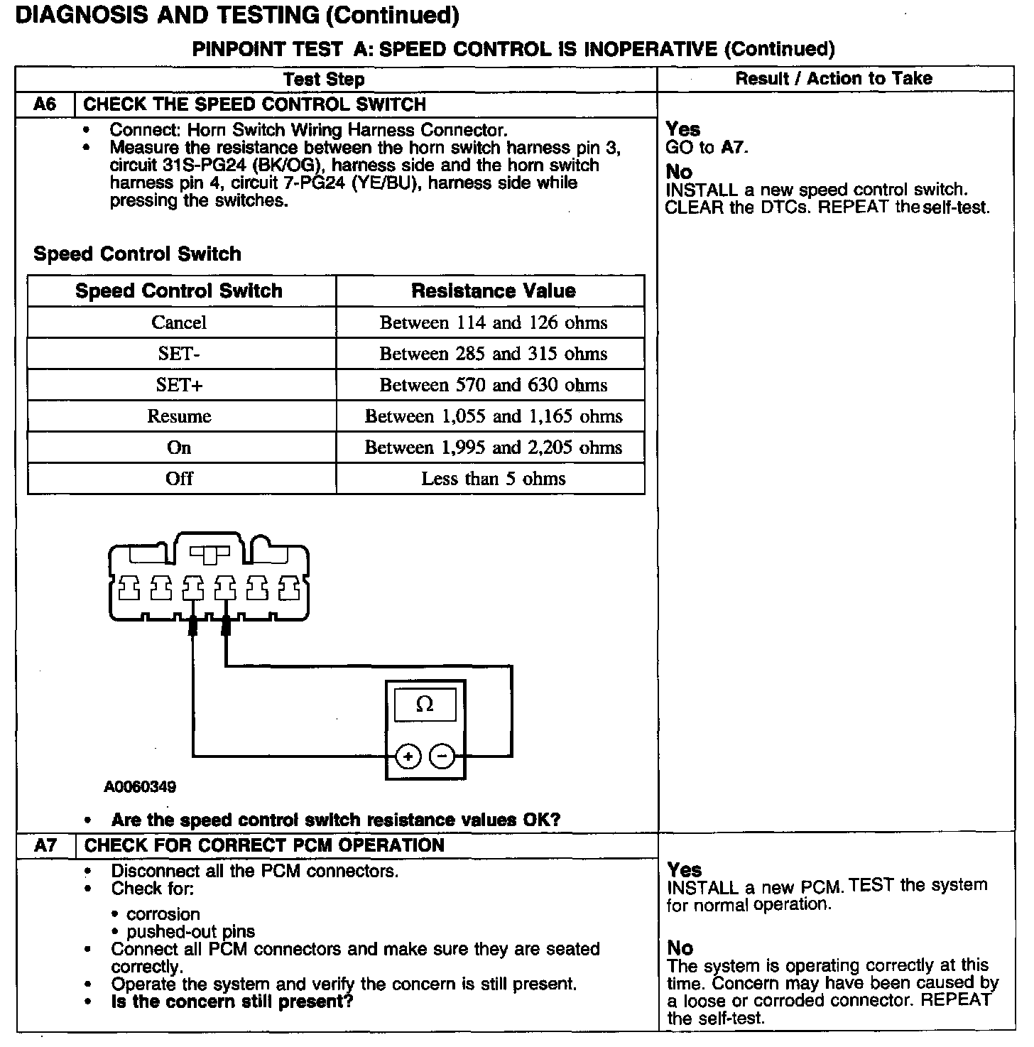 PINPOINT TEST A: THE SPEED CONTROL IS INOPERATIVE