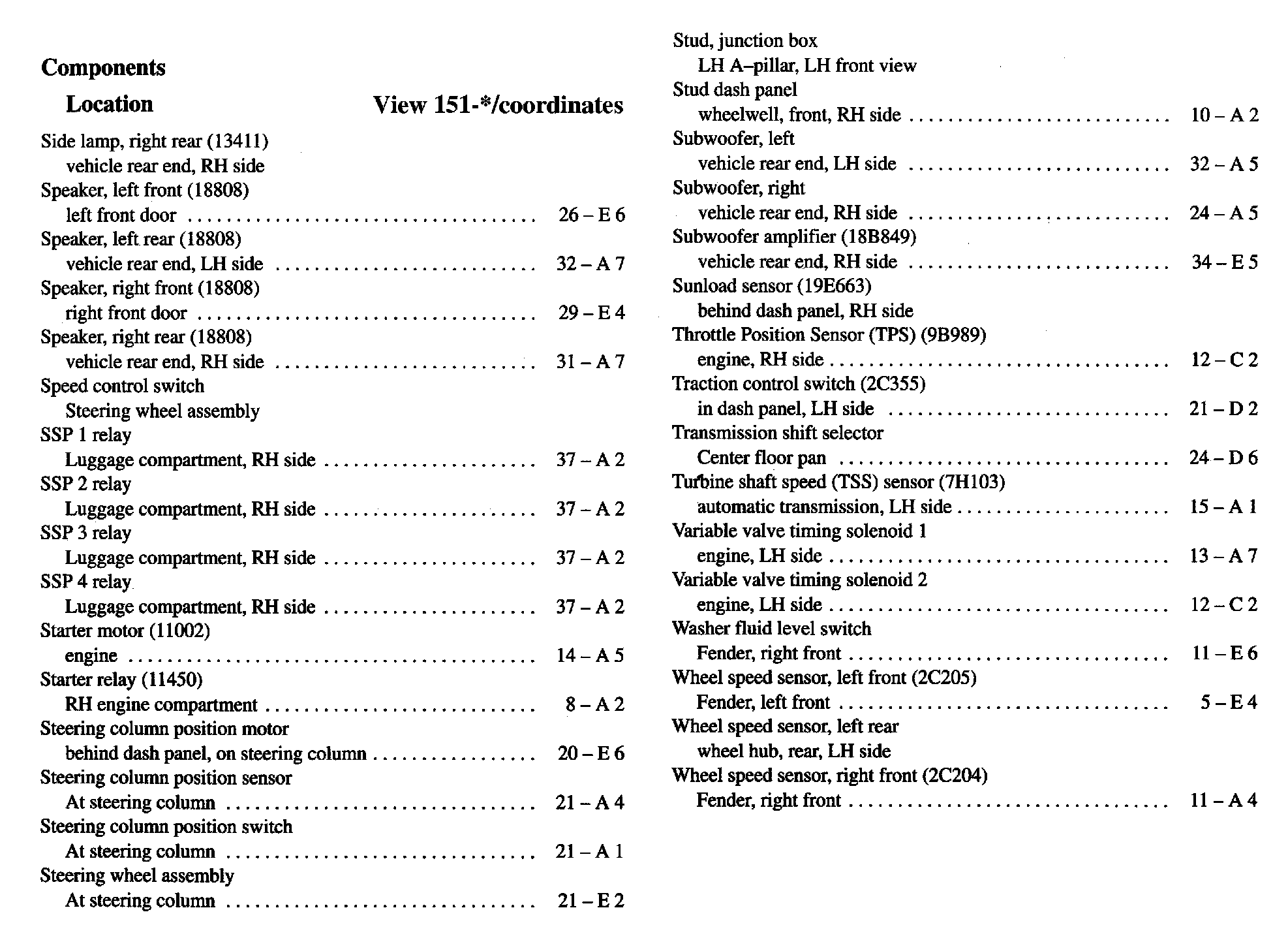 PLEASE NOTE: If a link on the Component Location Index to a View is not provided, that means that the Component and/or View in question does NOT apply to the vehicle model selected.
