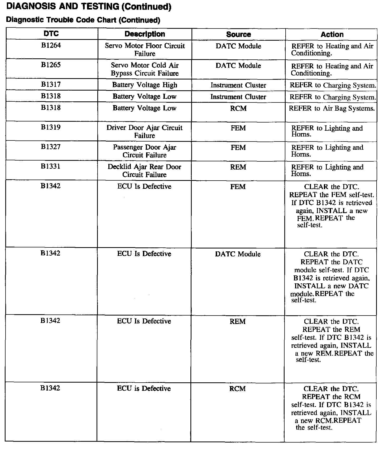 DTC Chart B1264 - B1342: