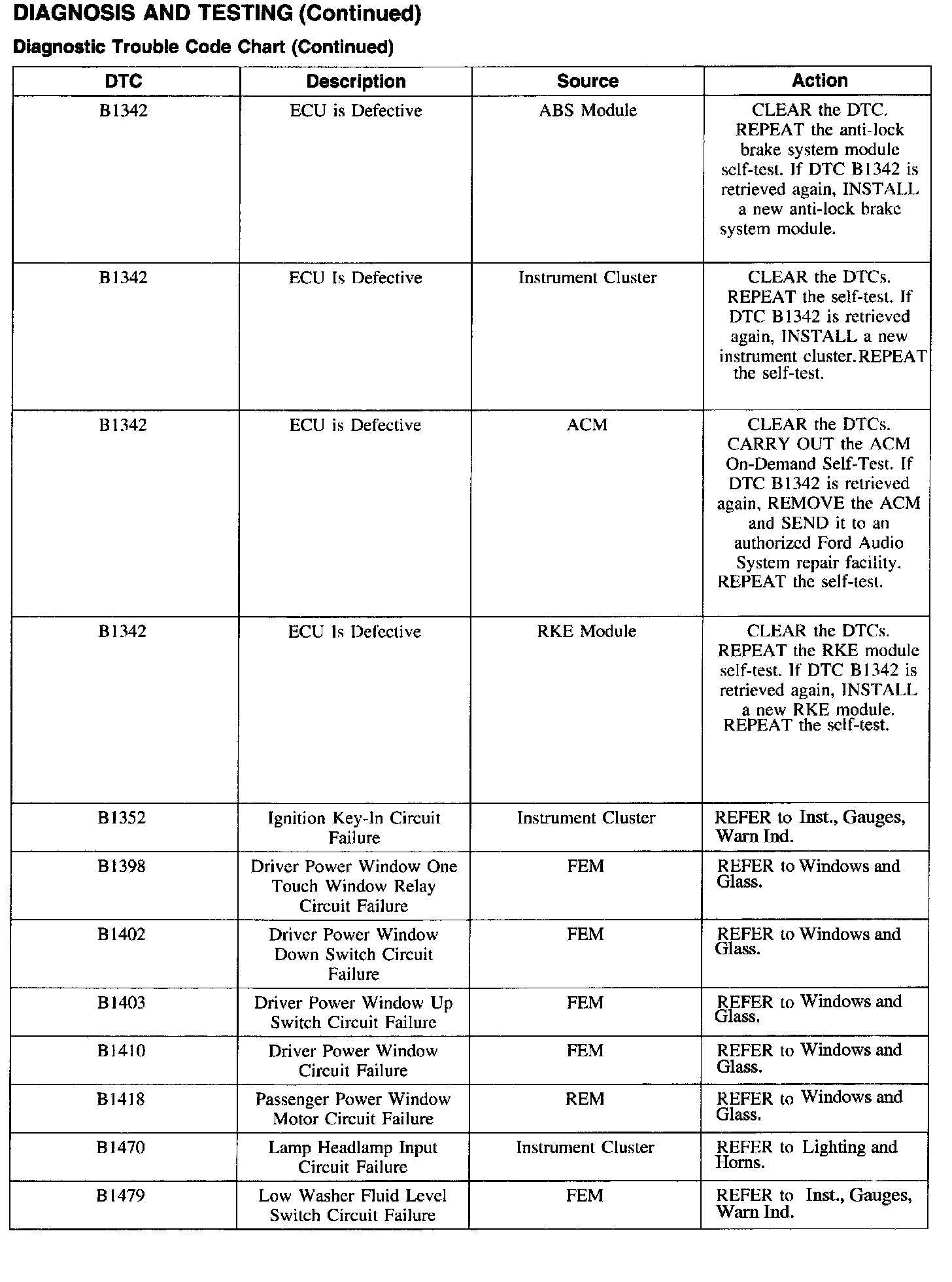 DTC Chart B1342 - B1479:
