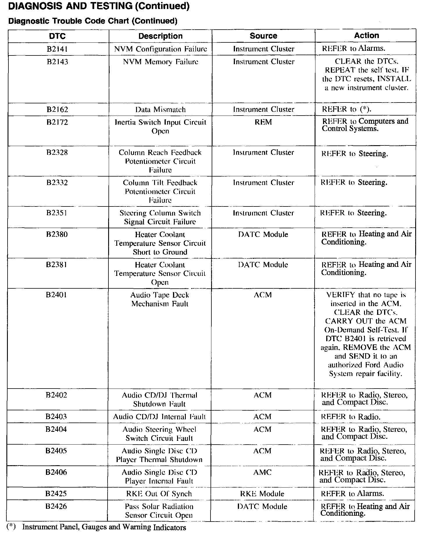 DTC Chart B2141 - B2426: