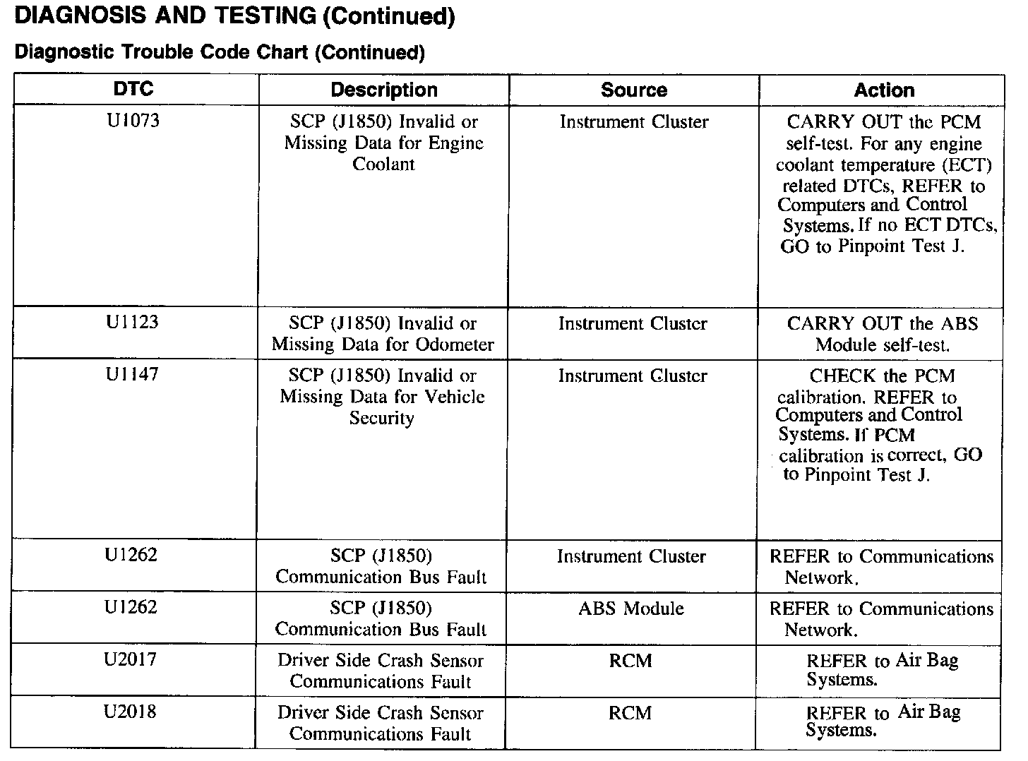 DTC Chart U1073 - U2018:
