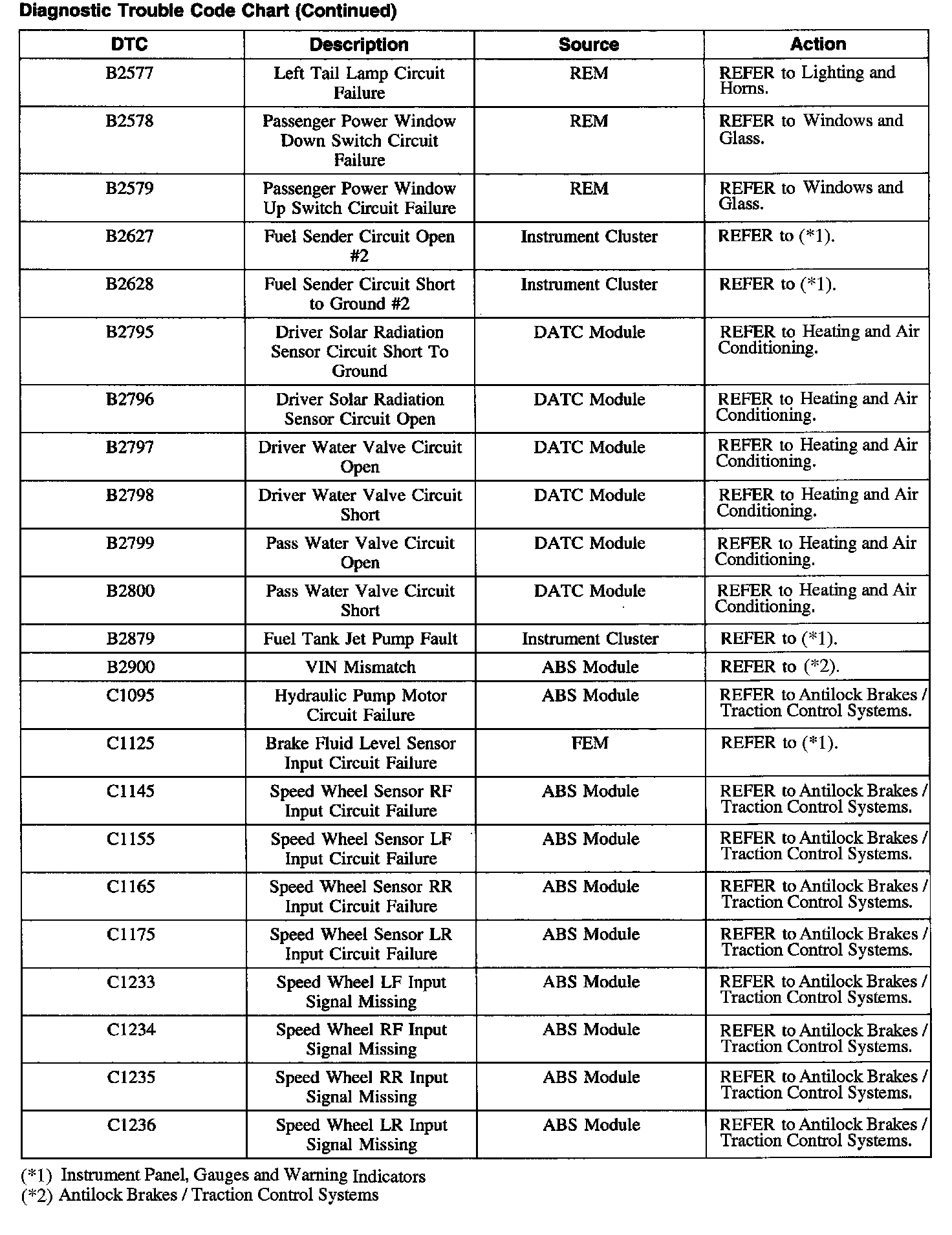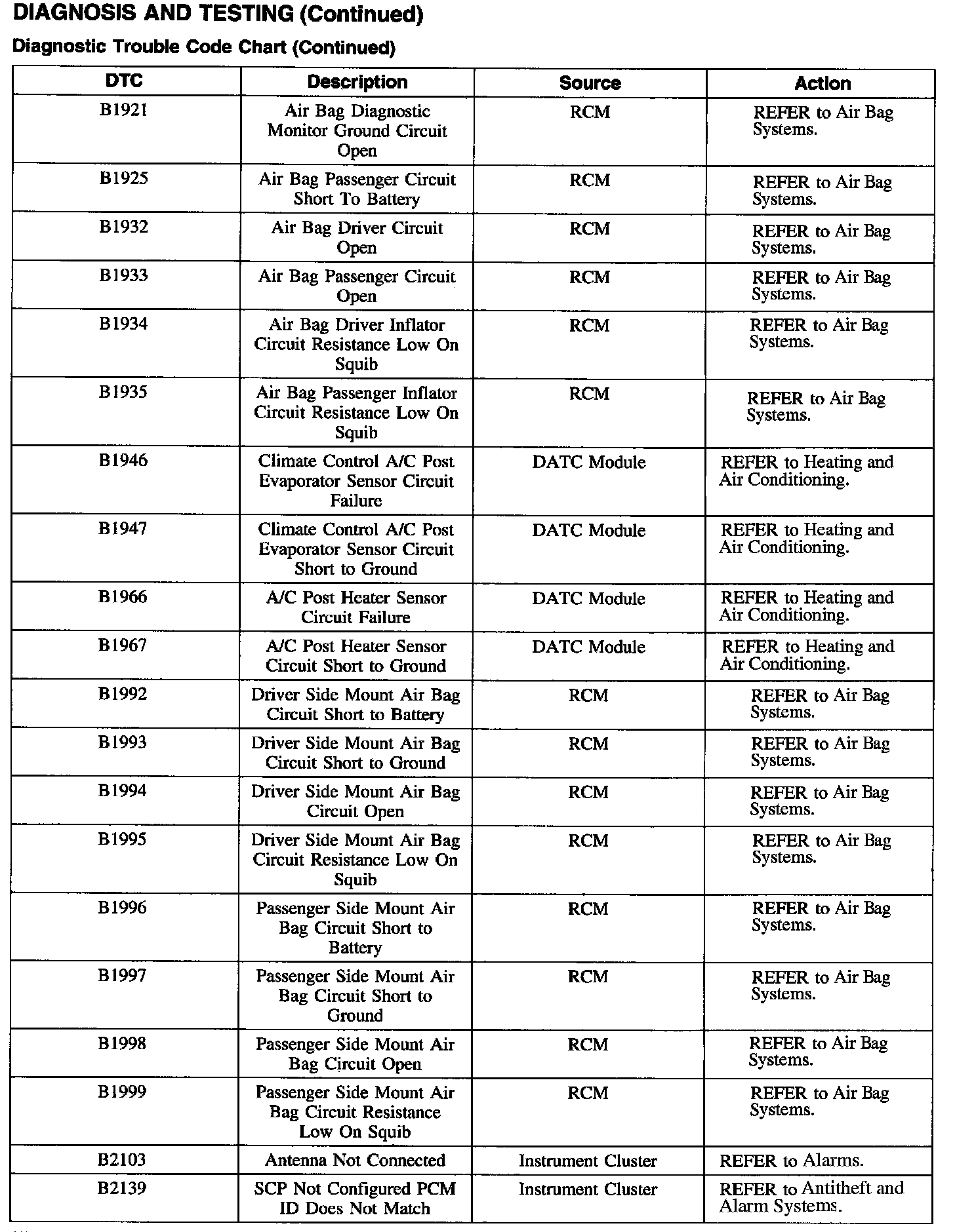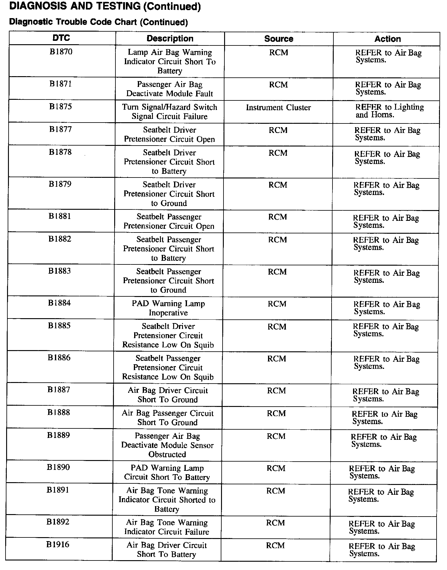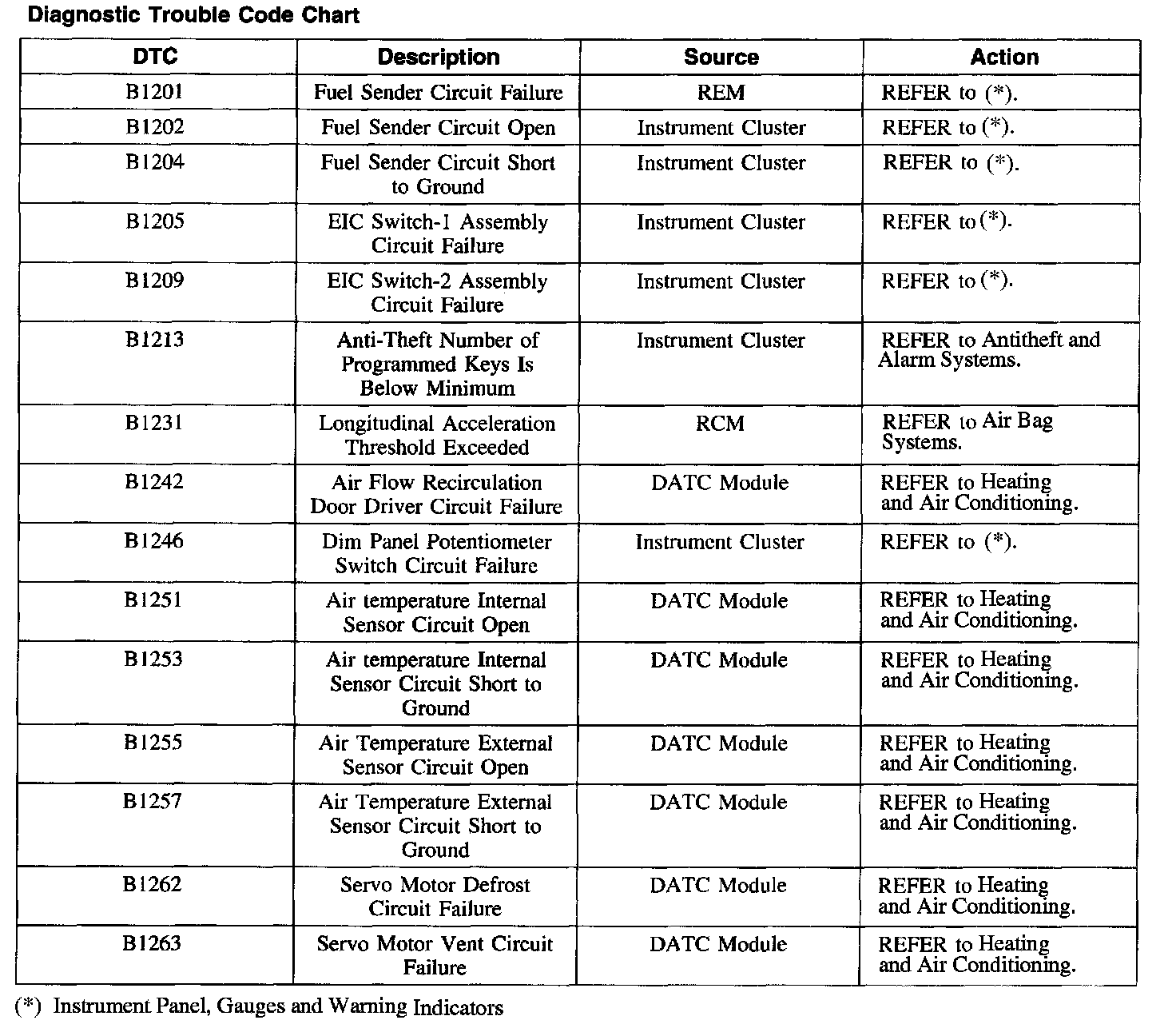 DTC Chart B1201 - B1263: