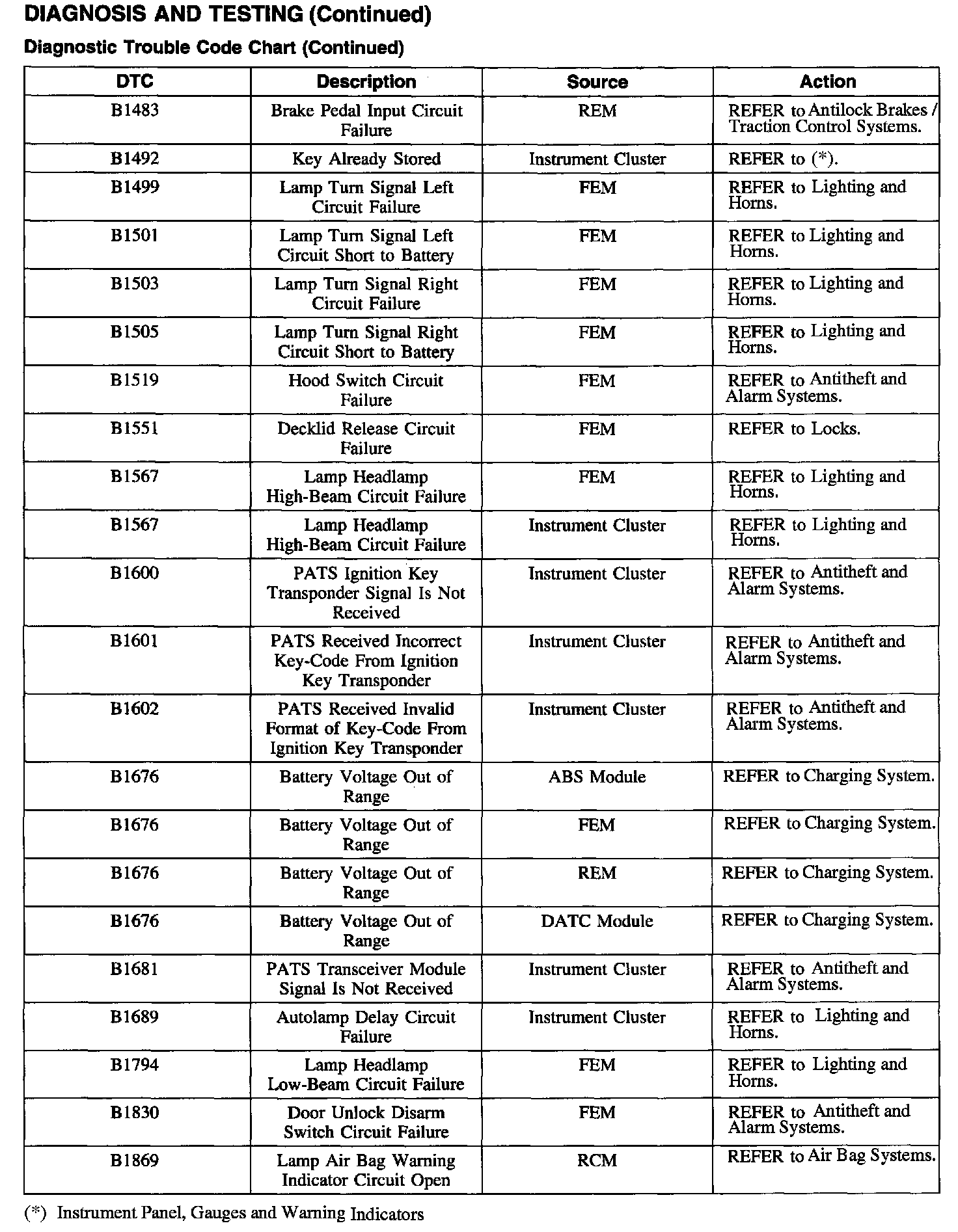 DTC Chart B1483 - B1869: