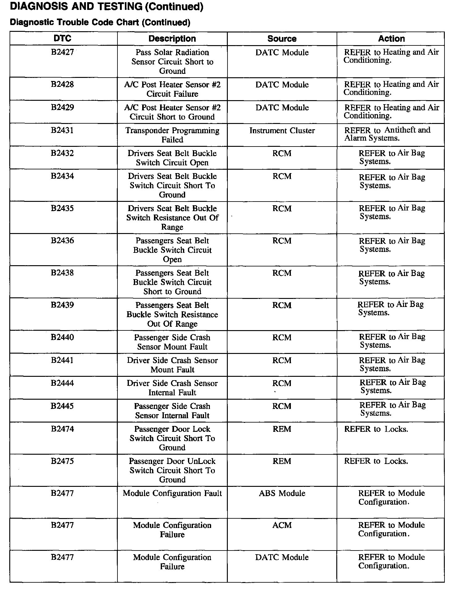 DTC Chart B2427 - B2477: