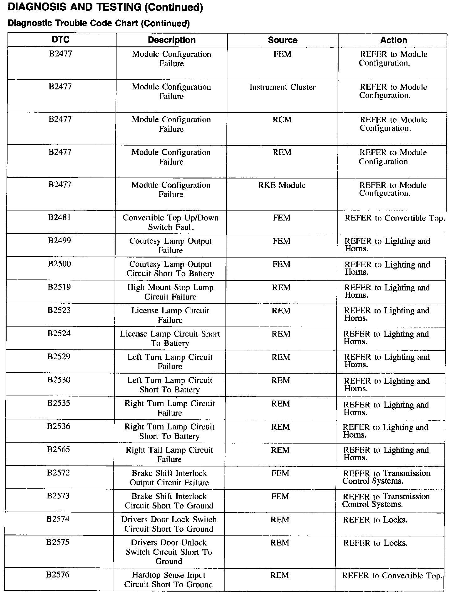 DTC Chart B2477 - B2576: