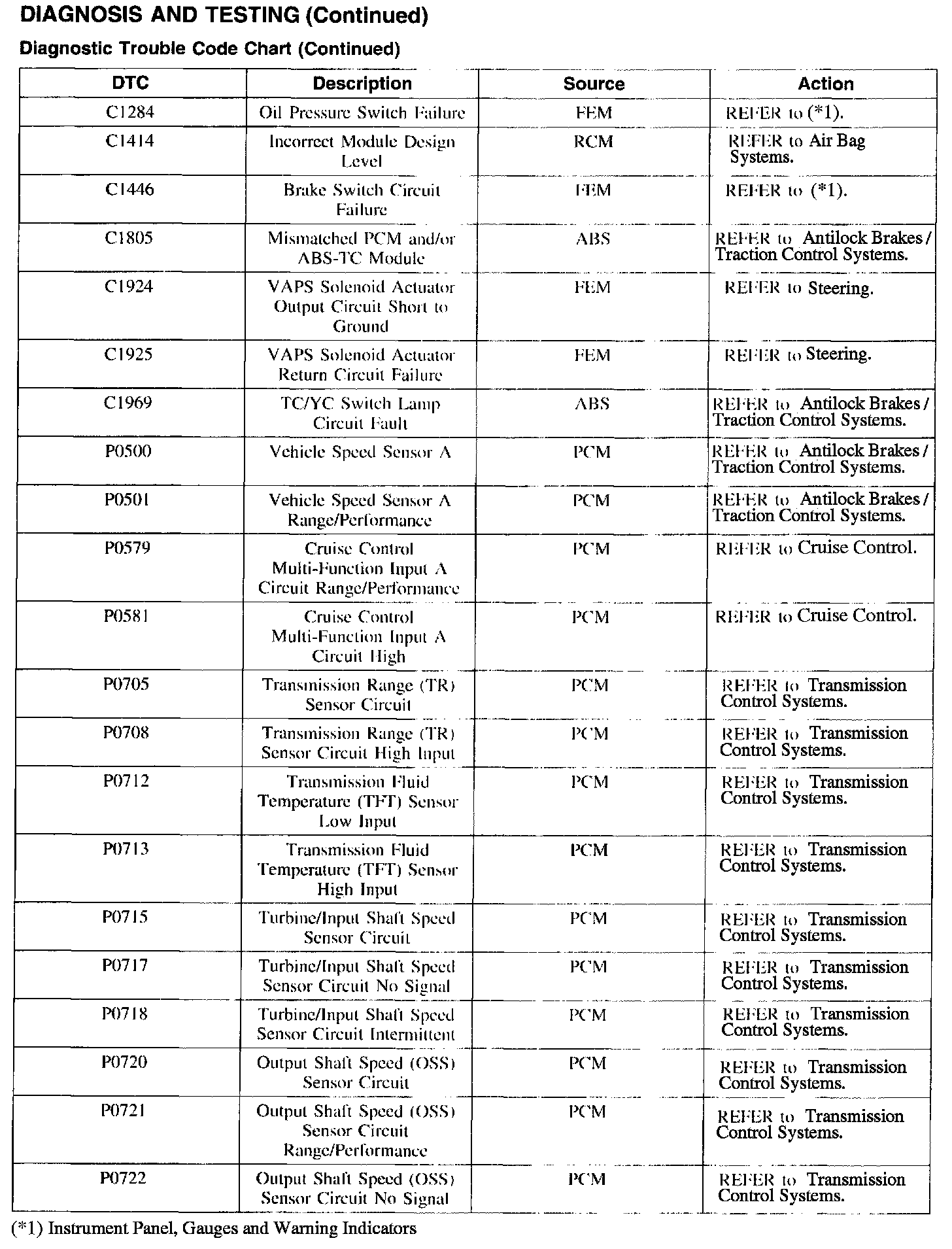 DTC Chart C1284 - P0722: