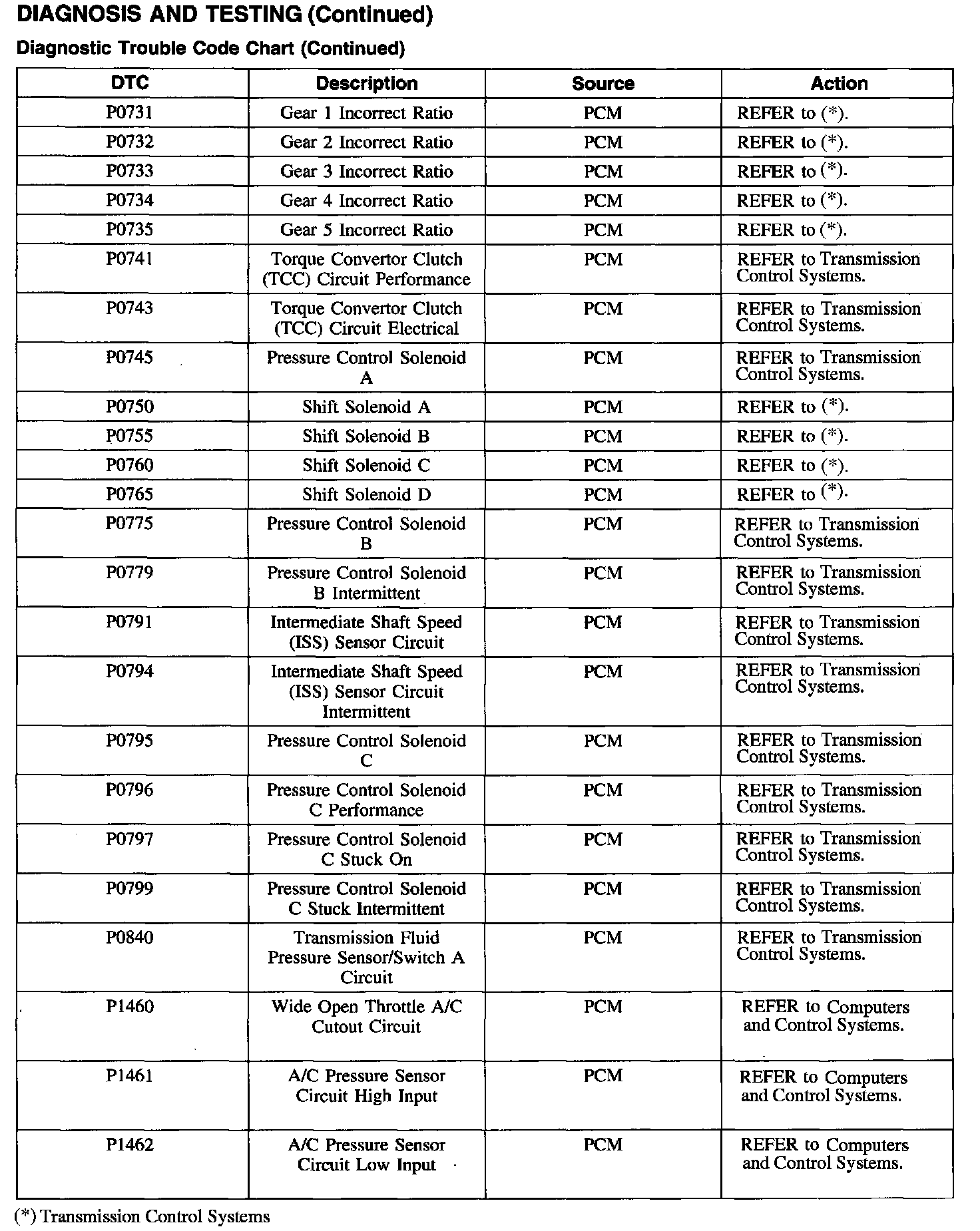 DTC Chart P0731 - P1462: