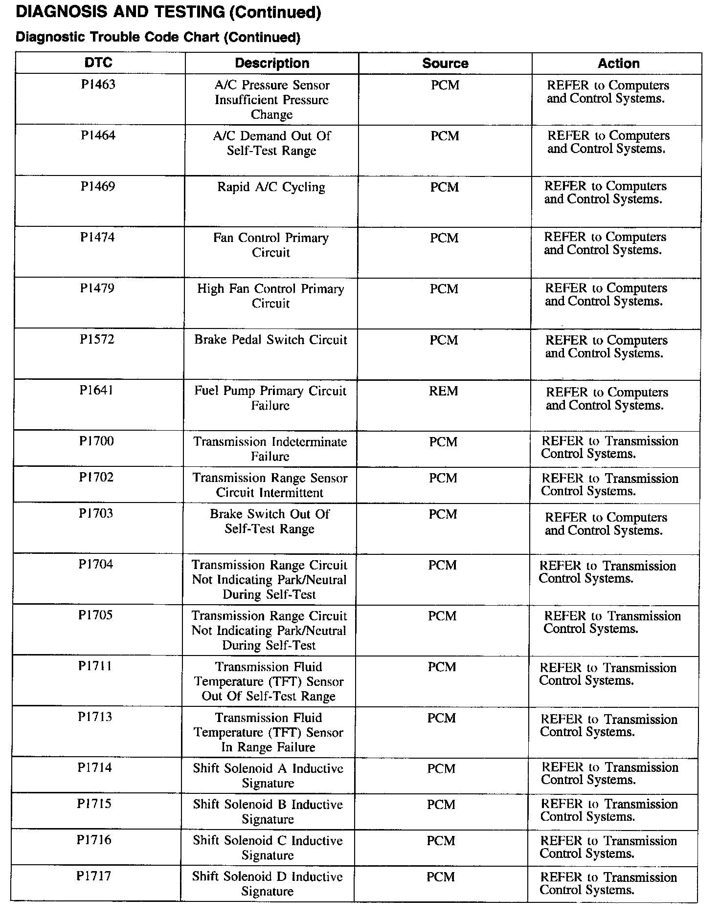 DTC Chart P1463 - P1717: