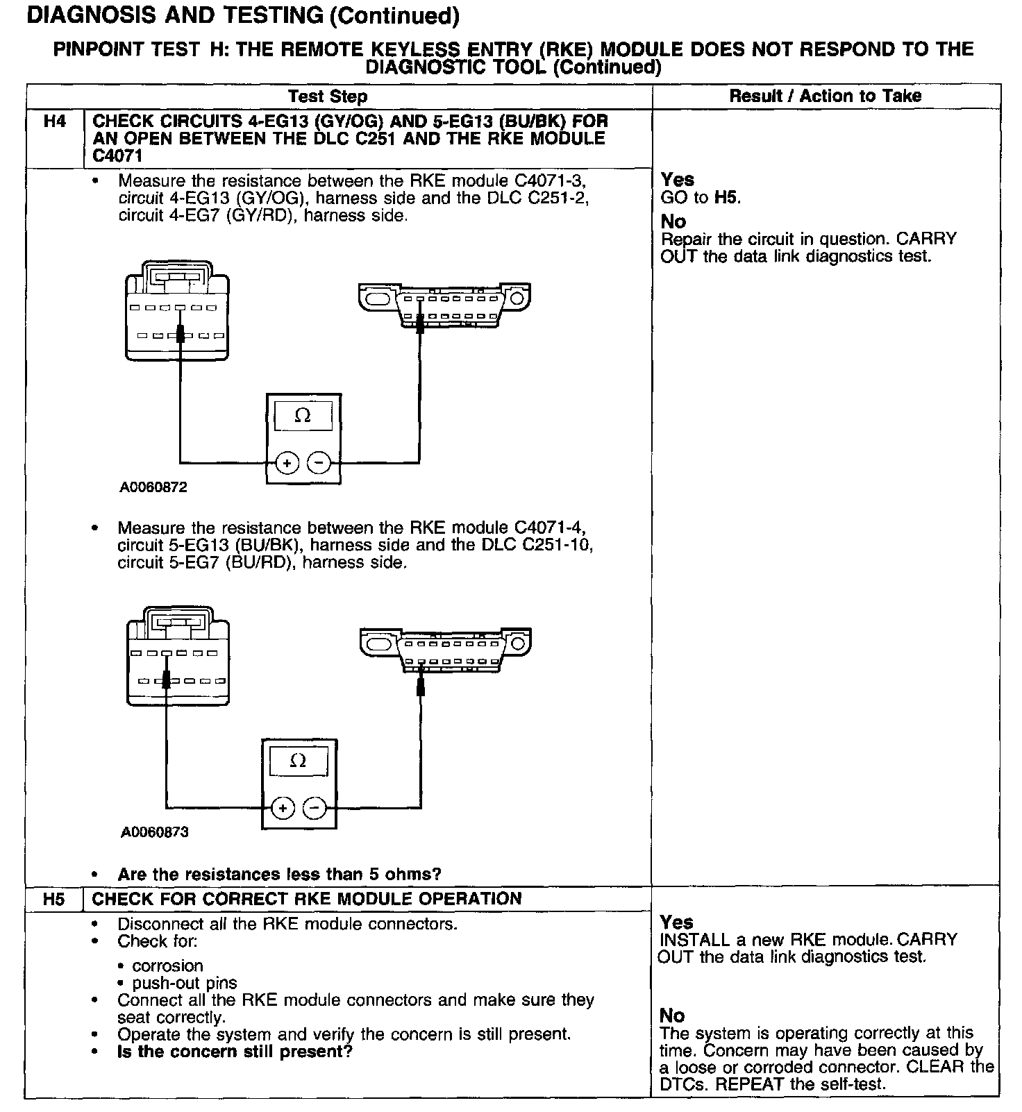 PINPOINT TEST H: THE REMOTE KEYLESS ENTRY (RKE) MODULE DOES NOT RESPOND TO THE DIAGNOSTIC TOOLTest H1-H3: