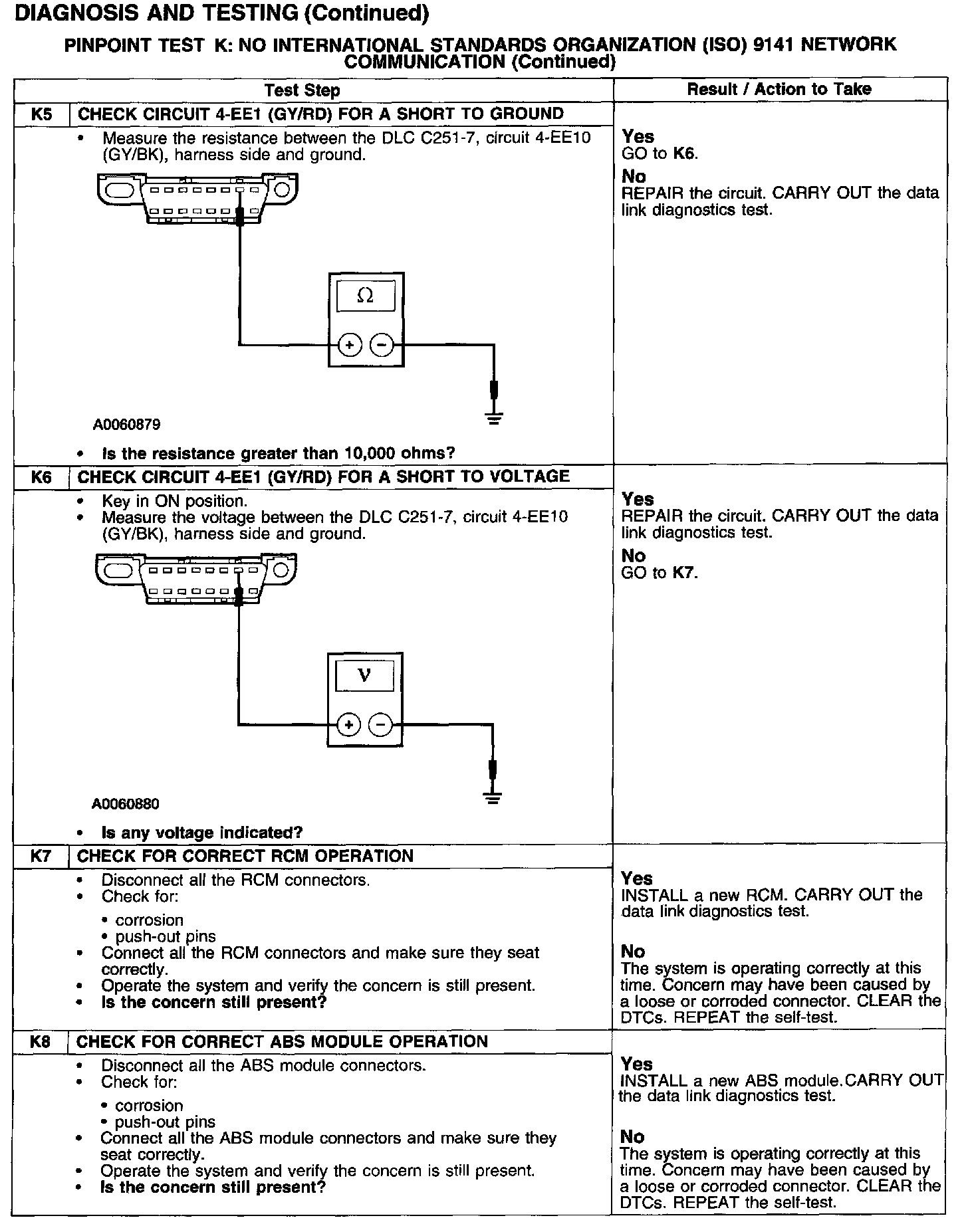 PINPOINT TEST K: NO INTERNATIONAL STANDARDS ORGANIZATION (ISO) 9141 NETWORK COMMUNICATIONTest K1-K4: