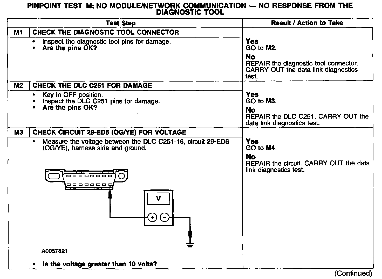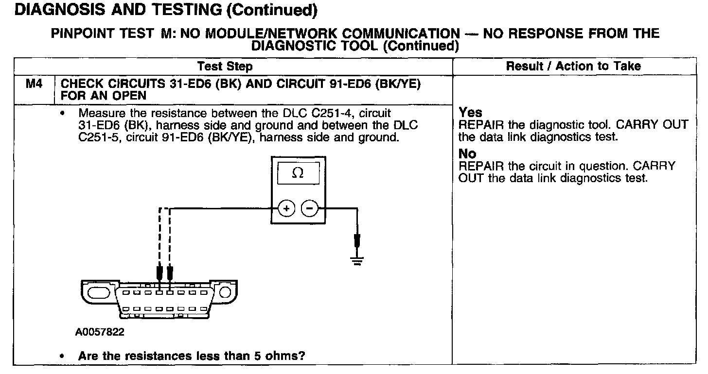 PINPOINT TEST M: NO MODULE/NETWORK COMMUNICATION - NO RESPONSE FROM THE DIAGNOSTIC TOOLTest M1-M3: