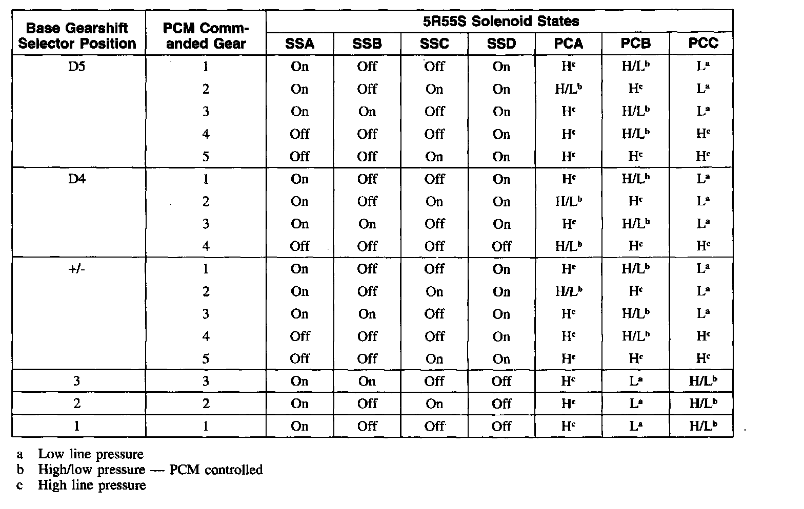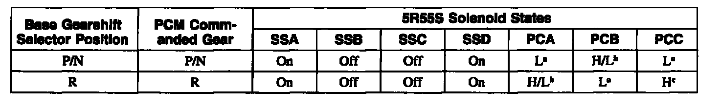 Solenoid Operation Chart