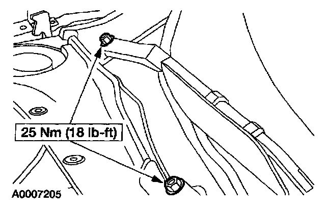 1. Position the windshield wiper mounting arm and pivot shaft assembly aside, and loosen the upper windshield wiper motor bolt.