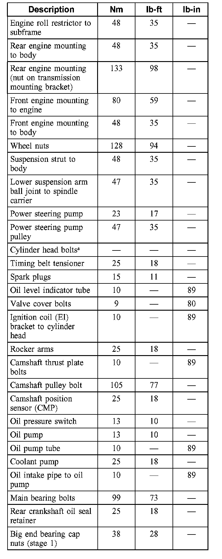 Torque Specifications