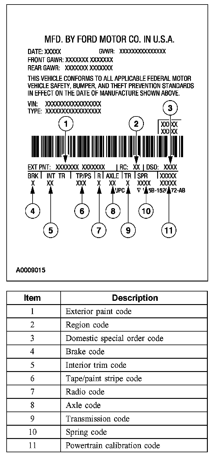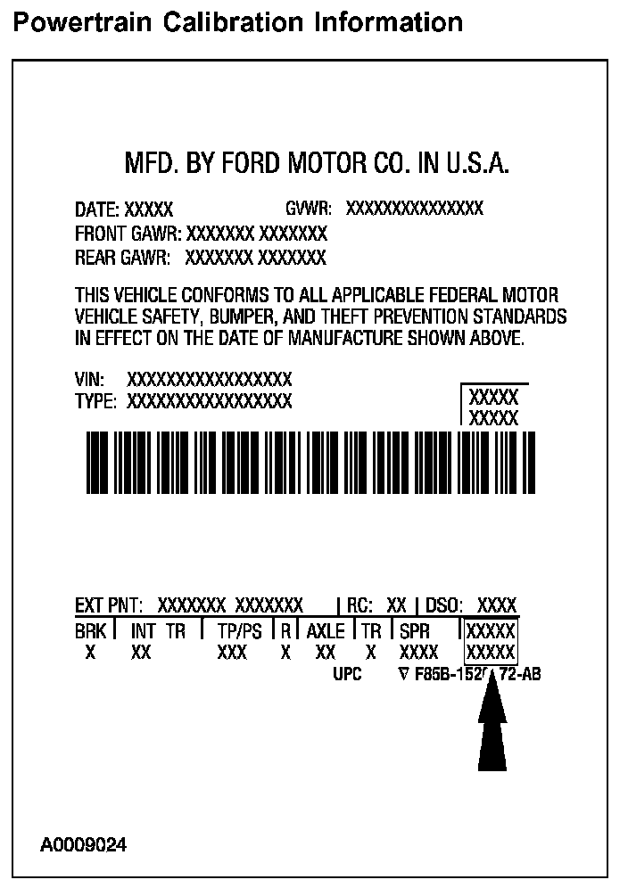 Powertrain calibration information is printed in the lower right corner of the vehicle certification (VC) label. Only the base calibration information is printed. Revision levels will not appear, however, they can be found in On Line Automotive Service Information System (OASIS).