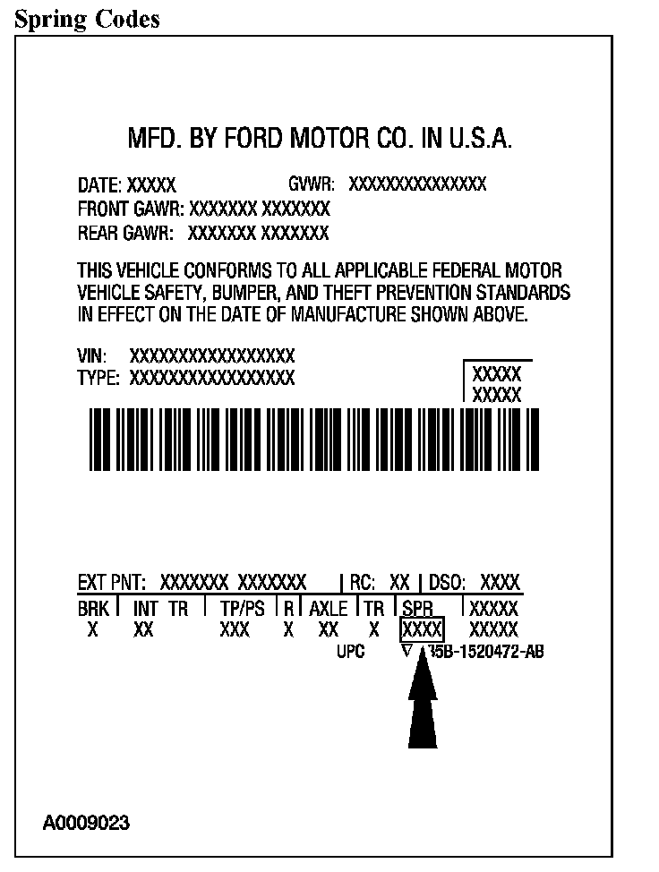 Spring codes identify both front and rear springs. The first set of characters identify the front springs. The second set of characters identify the rear springs.