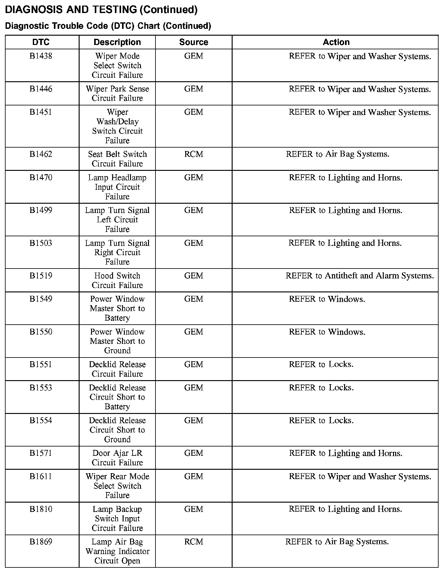 DTC Chart B1438 - B1869: