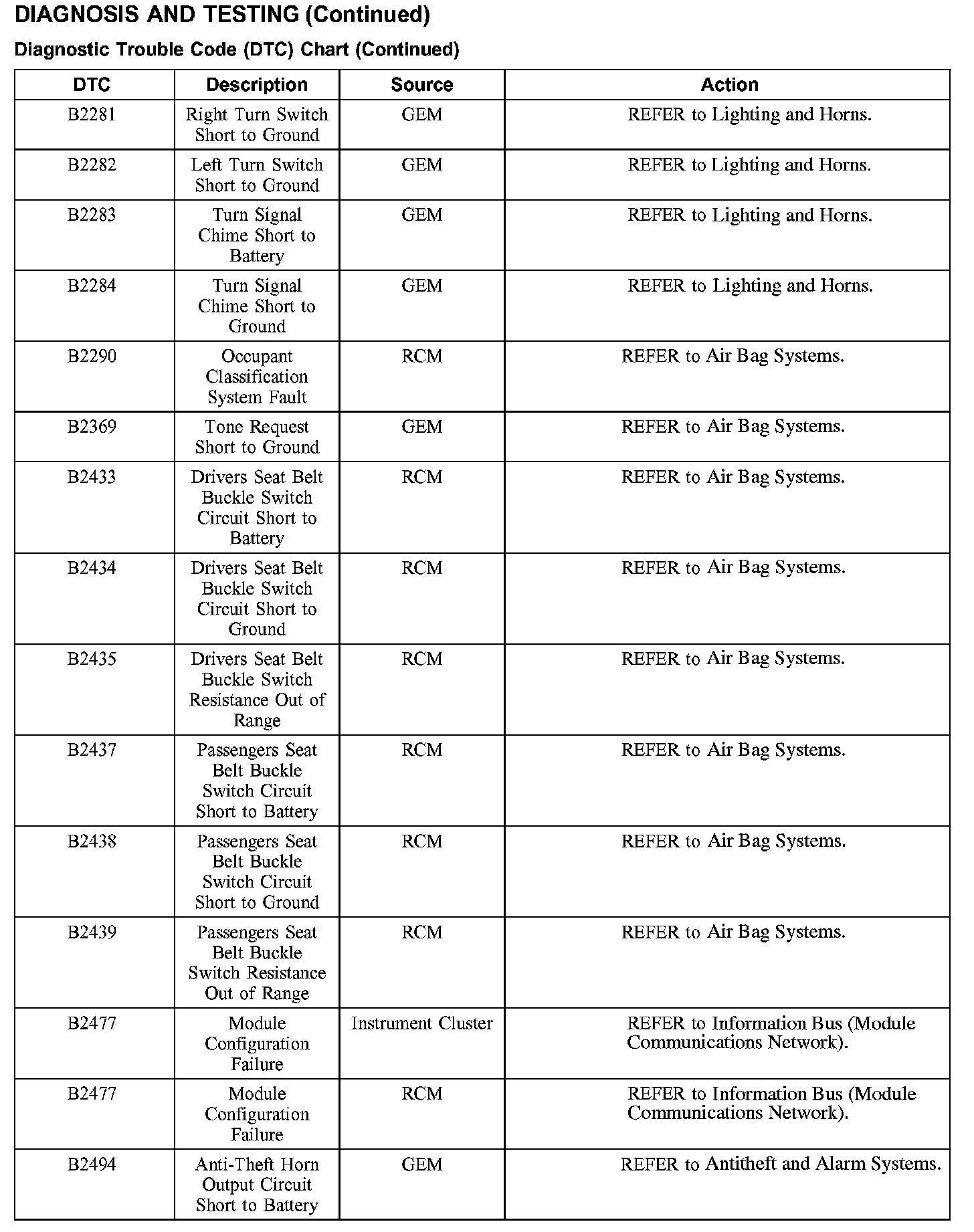 DTC Chart B2281 - B2494: