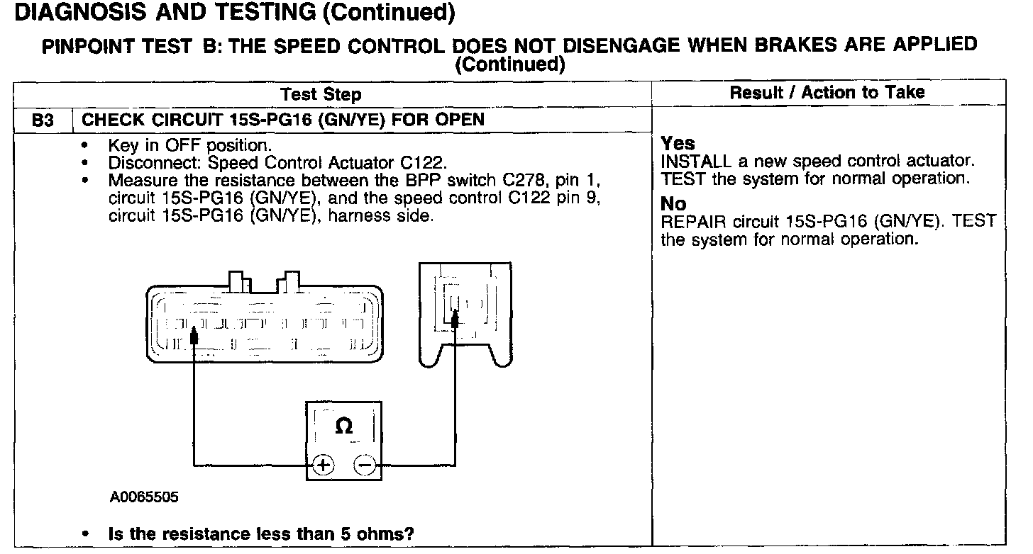PINPOINT TEST B: THE SPEED CONTROL DOES NOT DISENGAGE WHEN BRAKES ARE APPLIED