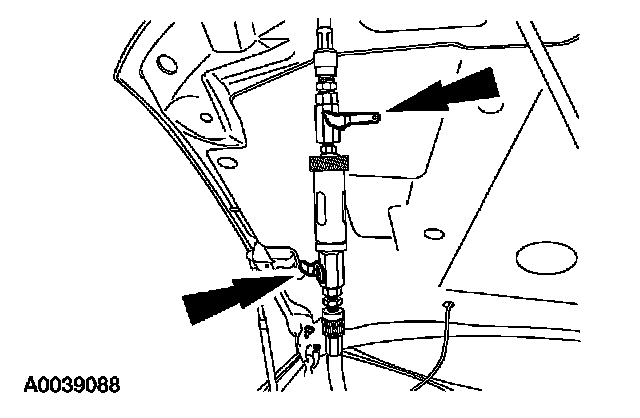 8. Remove the fluorescent dye injector from the low-pressure service gauge port valve and the R-134a A/C refrigerant service center or manifold gauge set.