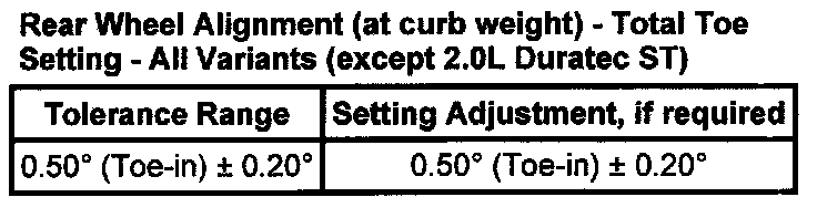 Toe Setting - All Variants Except 2.0 L Duratec ST