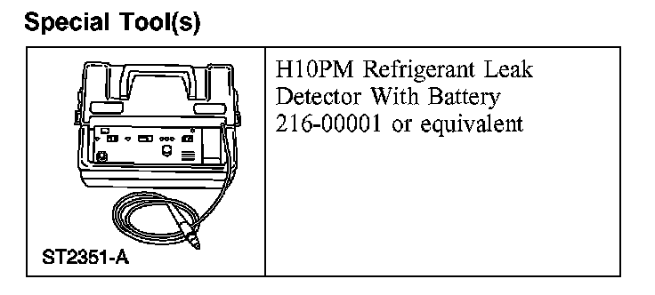 Leak test the refrigerant system using the Refrigerant Leak Detector. Follow the instructions included with the leak detector for handling and operation techniques.