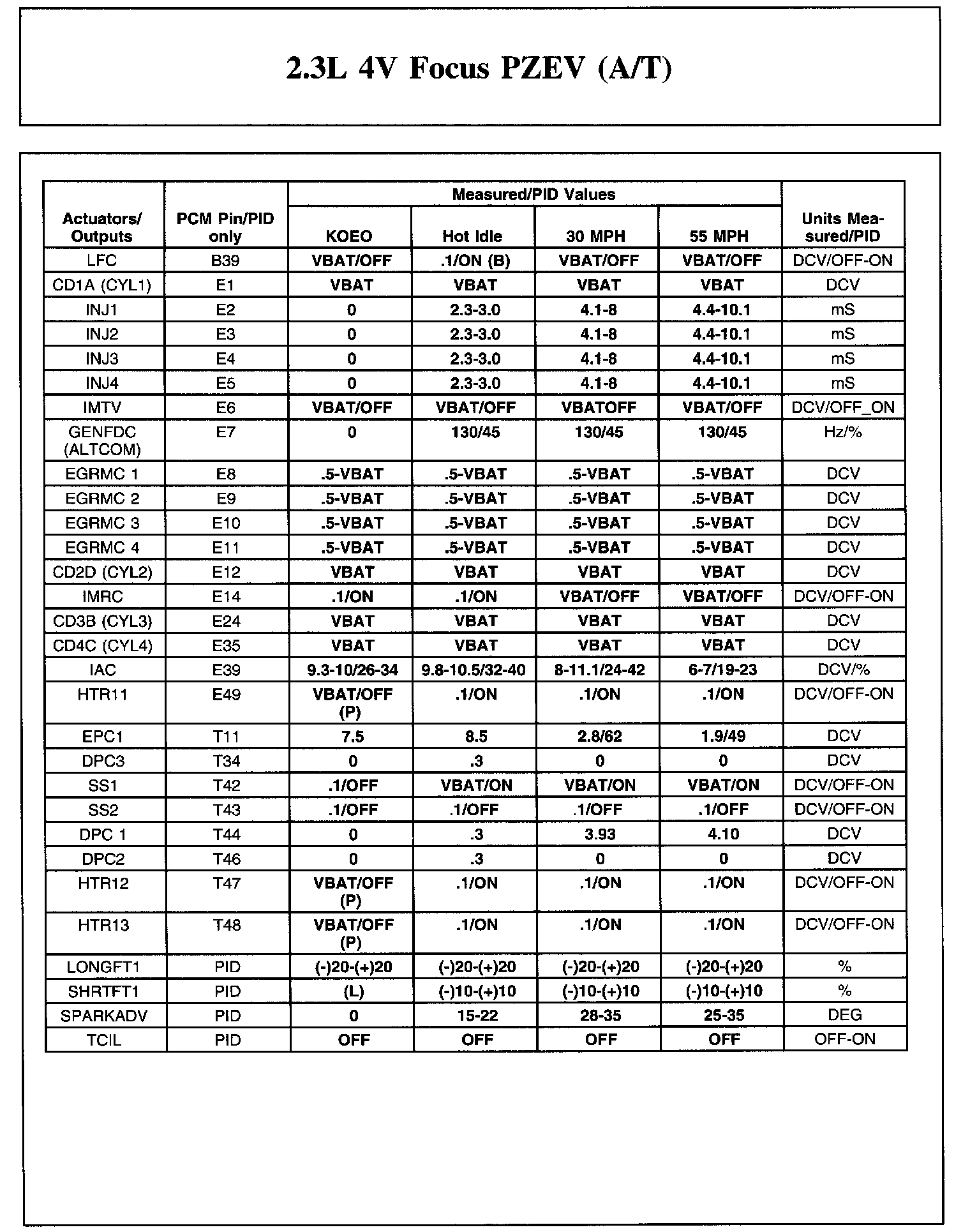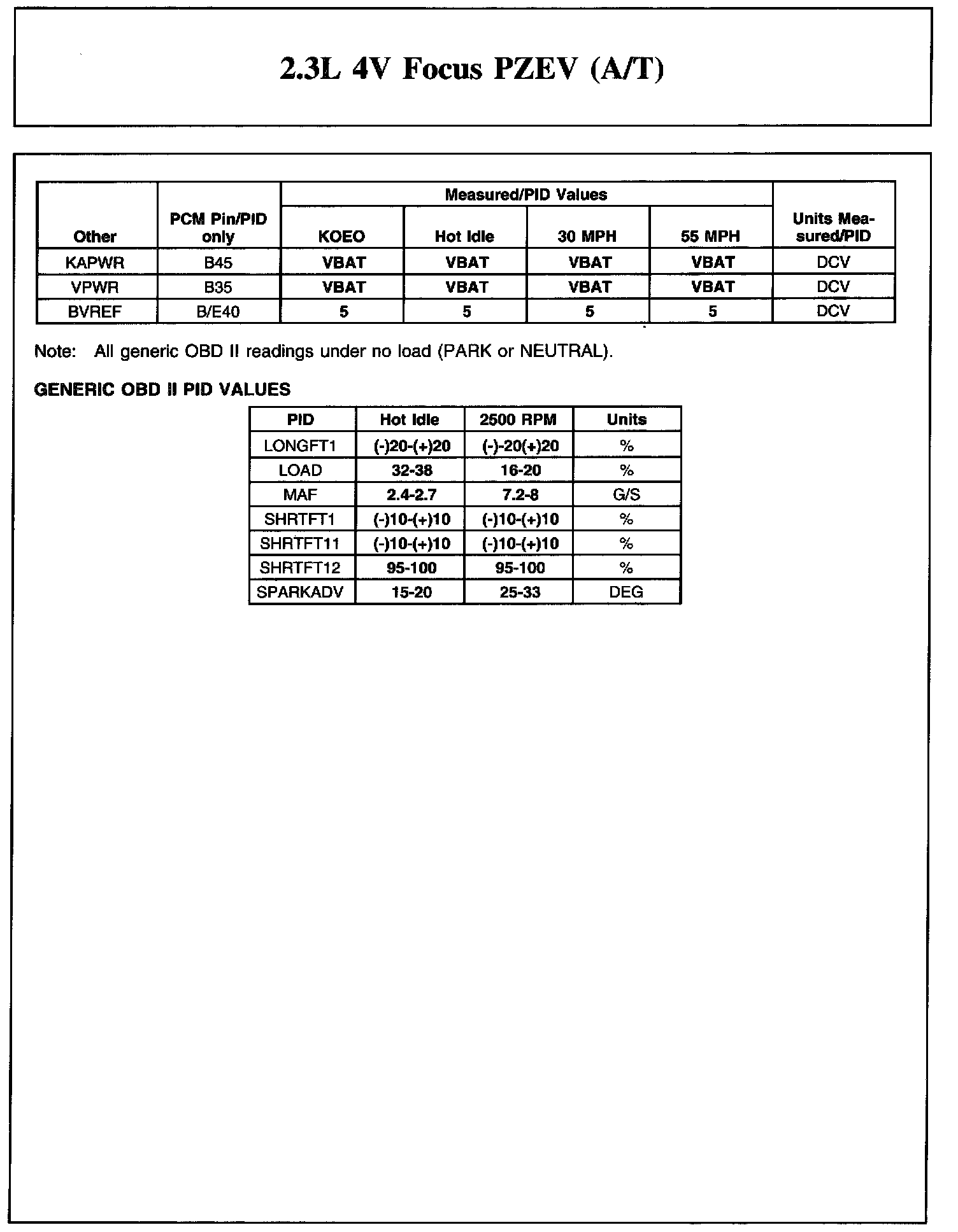 The Typical Diagnostic Reference Value Charts do not display fault PIDs. These are PIDs which indicate a hard fault with the circuit. They display a value of "YES" or "NO" and are PIDs ending with an "F".