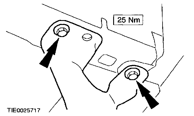3. Remove the radiator right-hand support bracket retaining bolts and lower the right-hand side of the radiator.