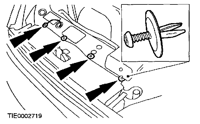 WARNING: Make sure the crash sensor locating tangs are correctly located in the radiator grille opening panel. Failure to follow this instruction may result in personal injury.