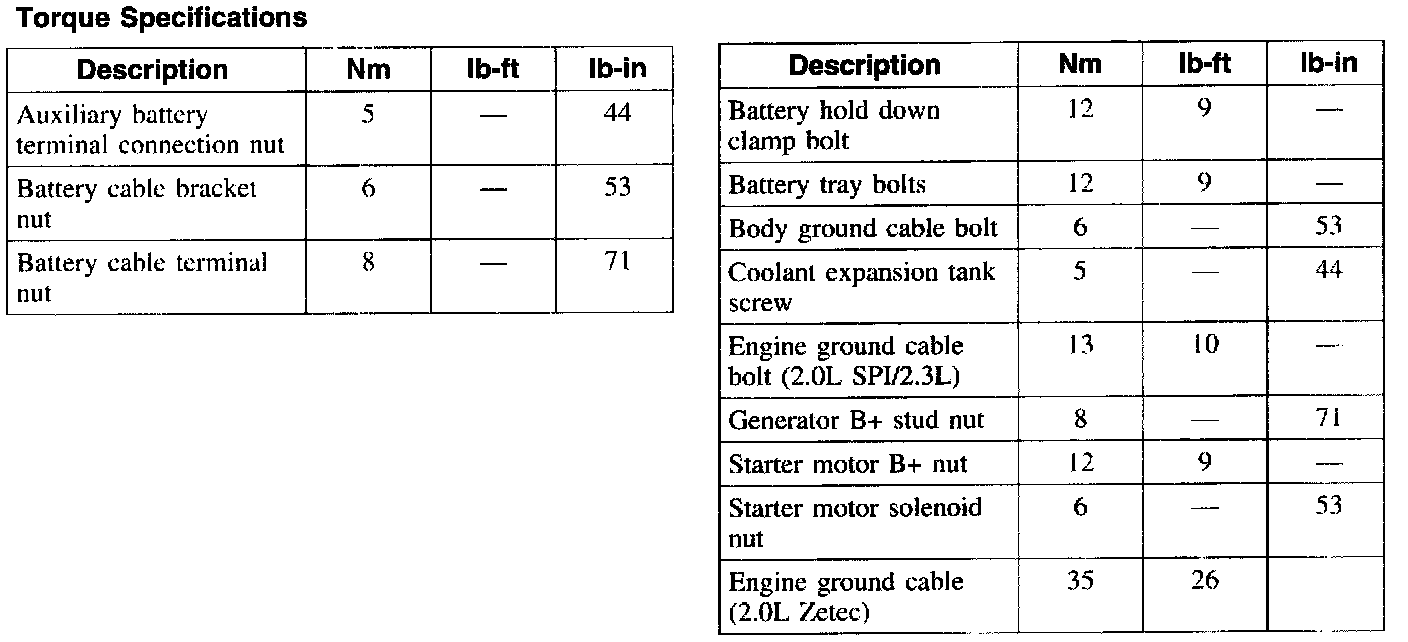 Torque Specifications: