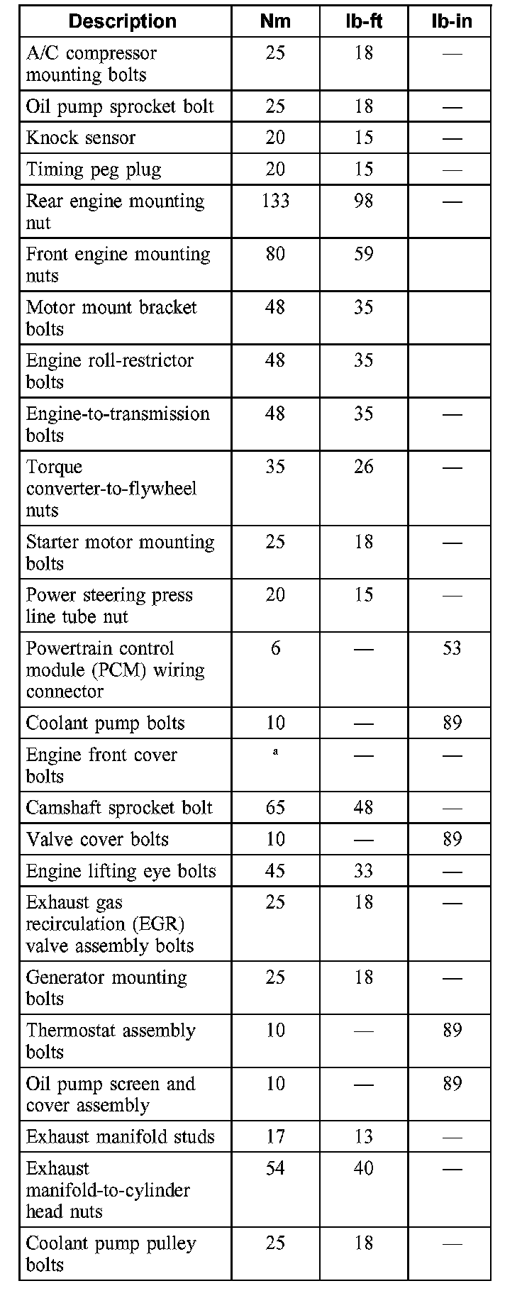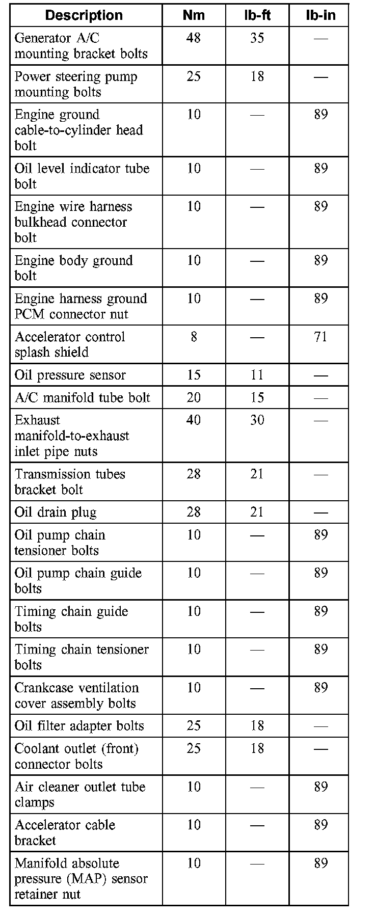 Torque Specifications