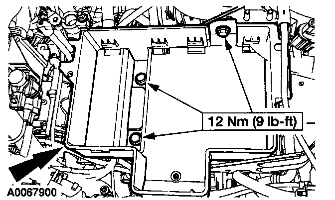 Remove the battery tray bolts and the battery tray.