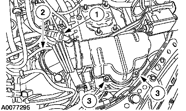 7. Install the three RH converter housing bolts.