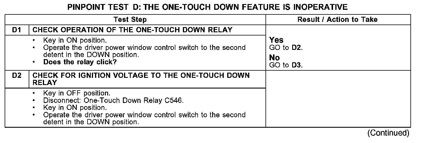 PINPOINT TEST D: THE ONE-TOUCH DOWN FEATURE IS INOPERATIVE