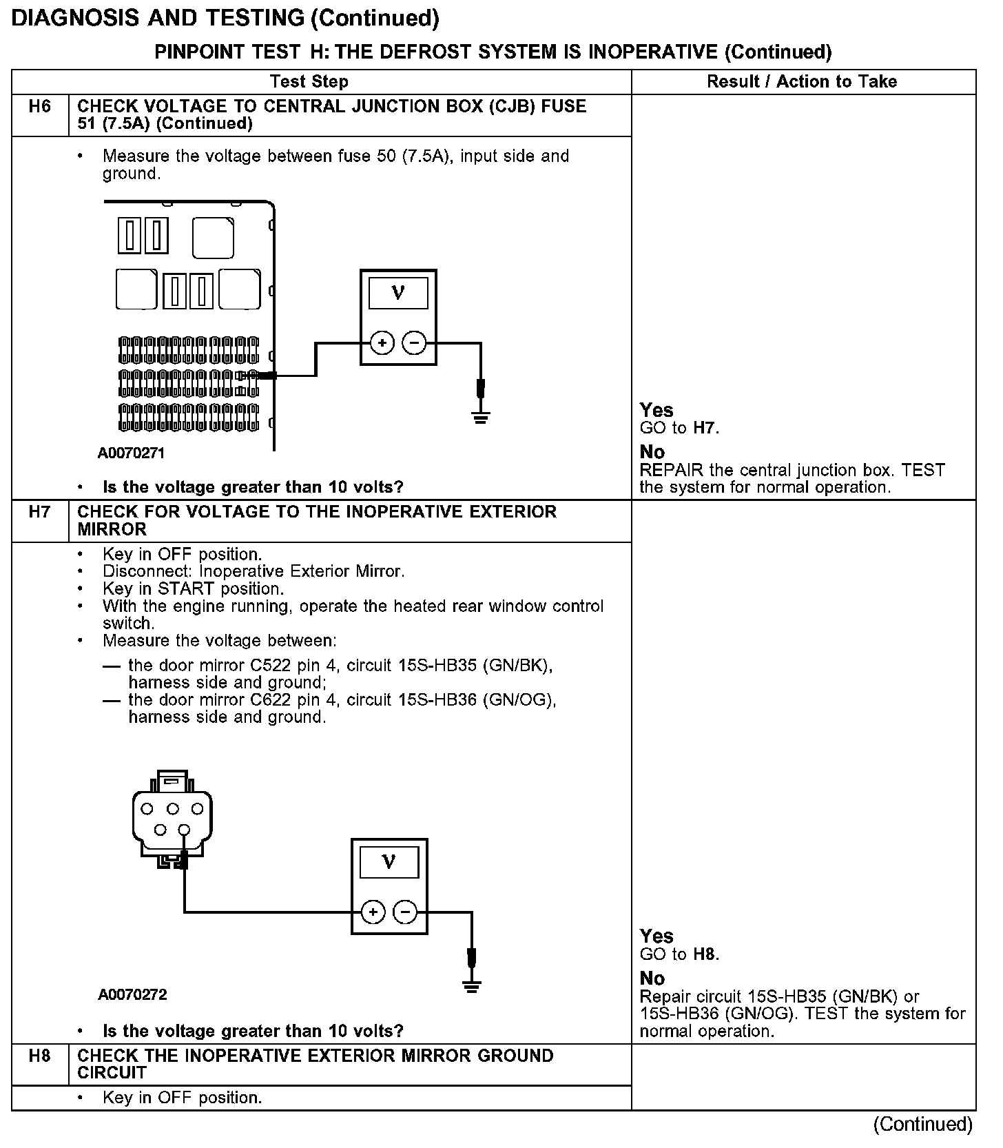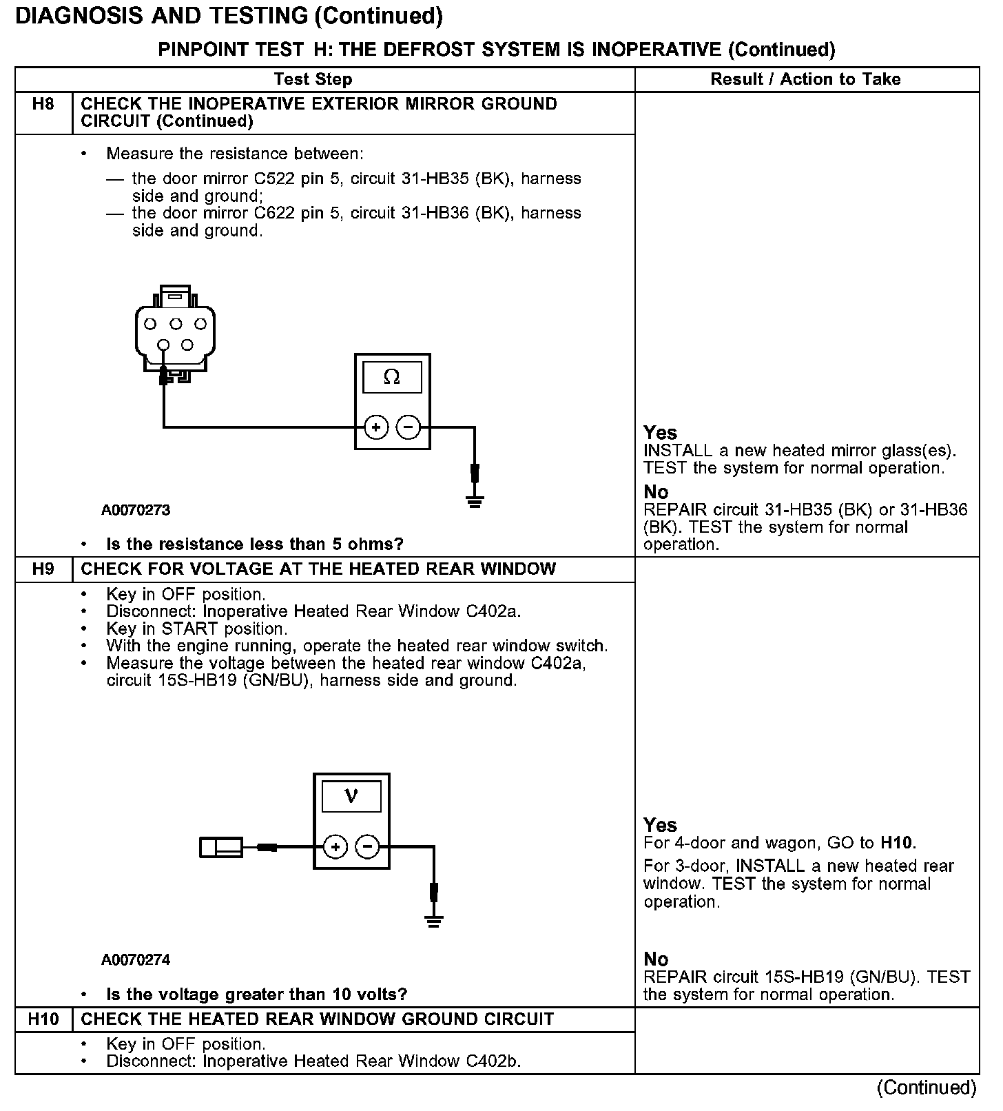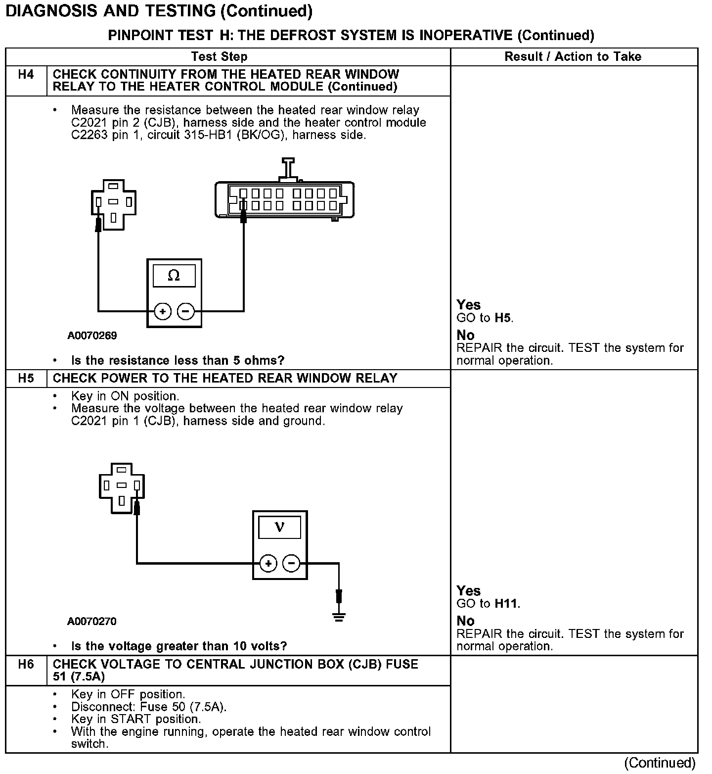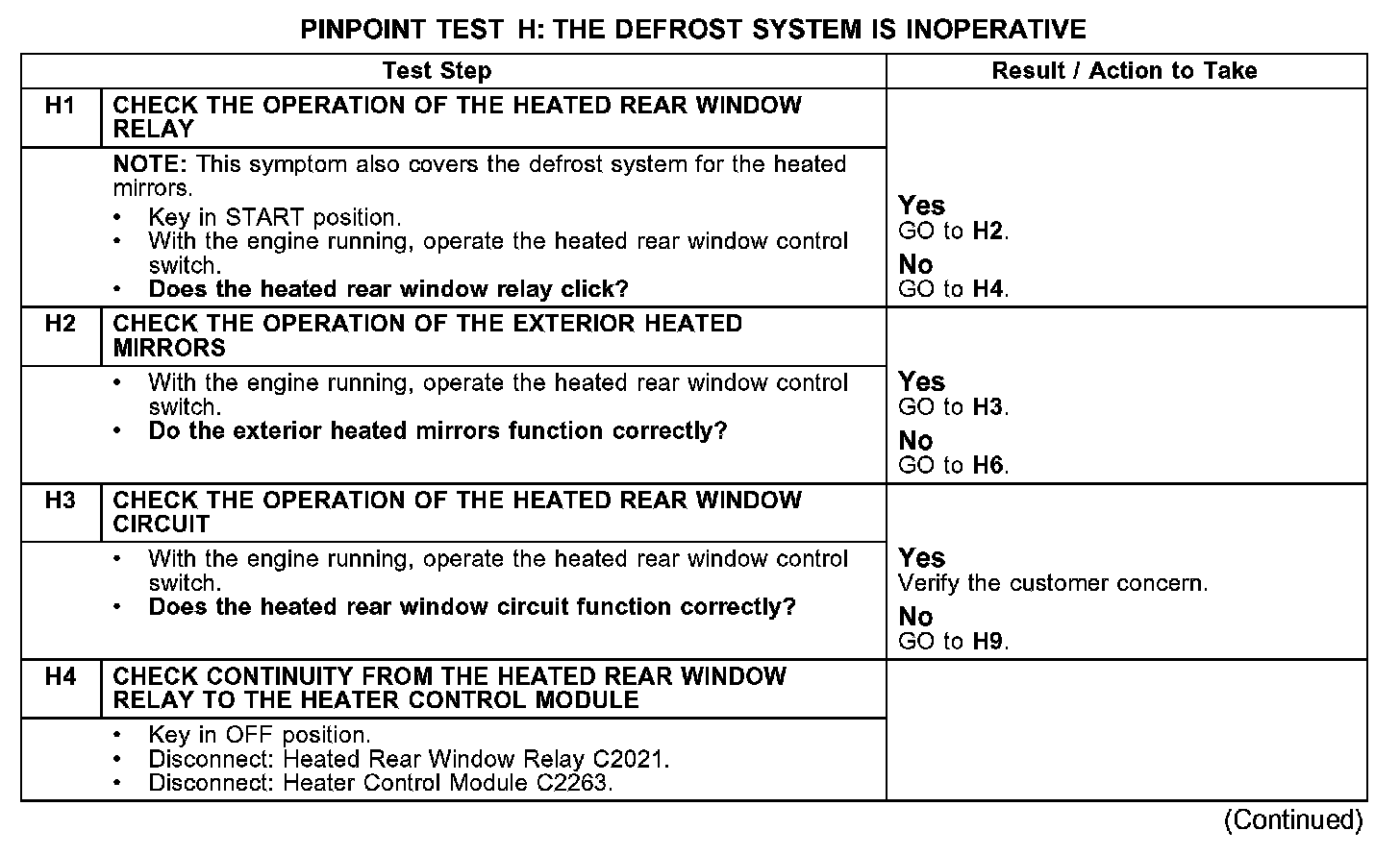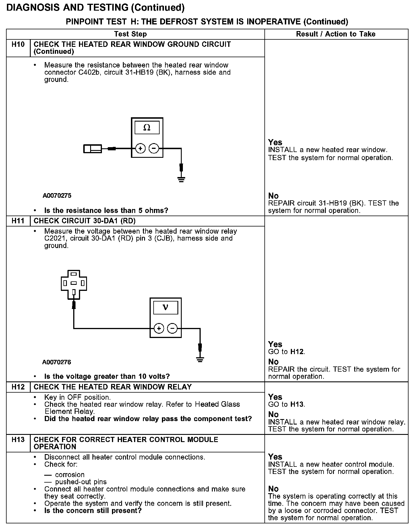 PINPOINT TEST H: THE DEFROST SYSTEM IS INOPERATIVE
