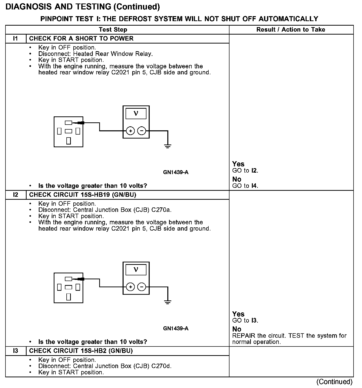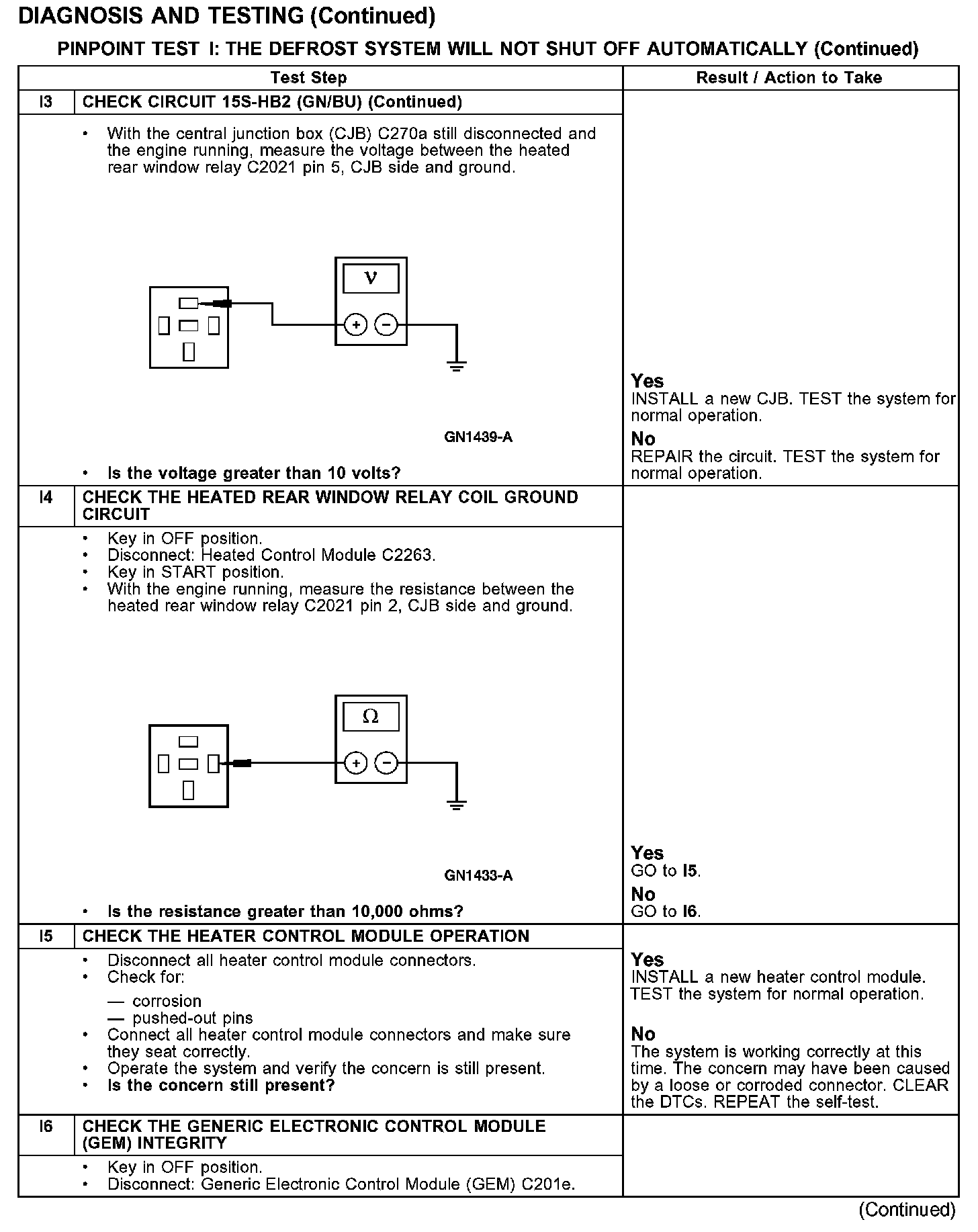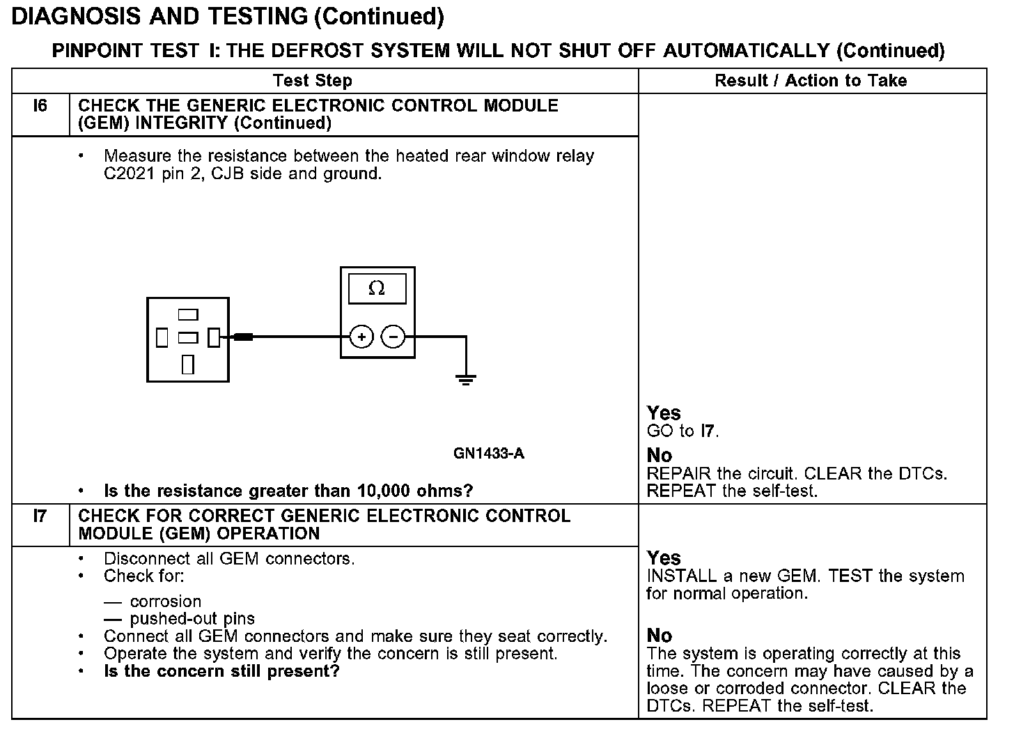 PINPOINT TEST I: THE DEFROST SYSTEM WILL NOT SHUT OFF AUTOMATICALLY